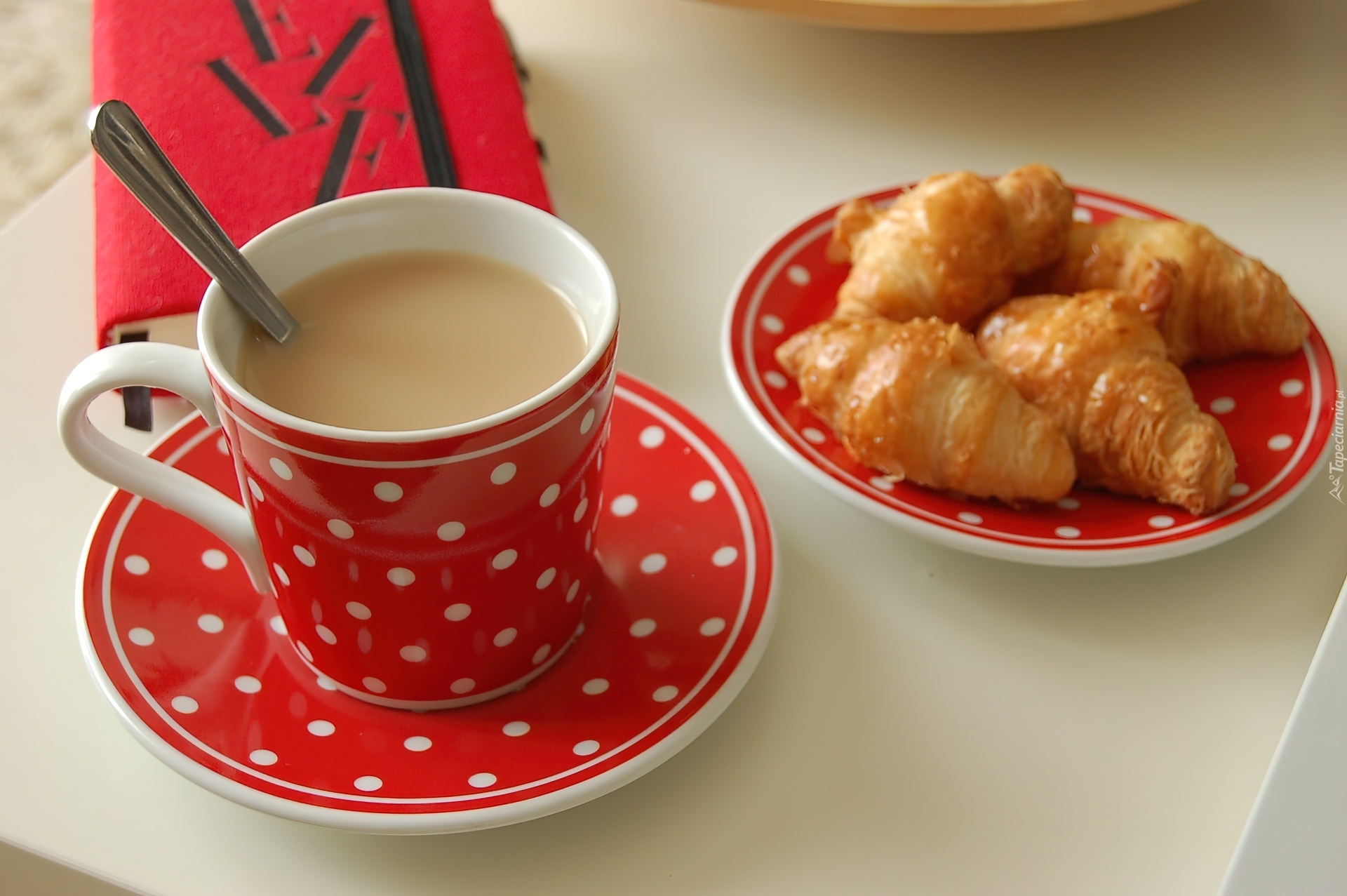 Edytor tapety: Filiżanka, Kawa, Rogaliki
