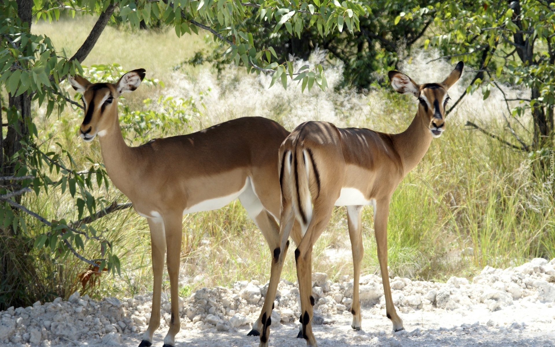 Edytor tapety: Dwie, Antylopy, Trawy, Drzewa