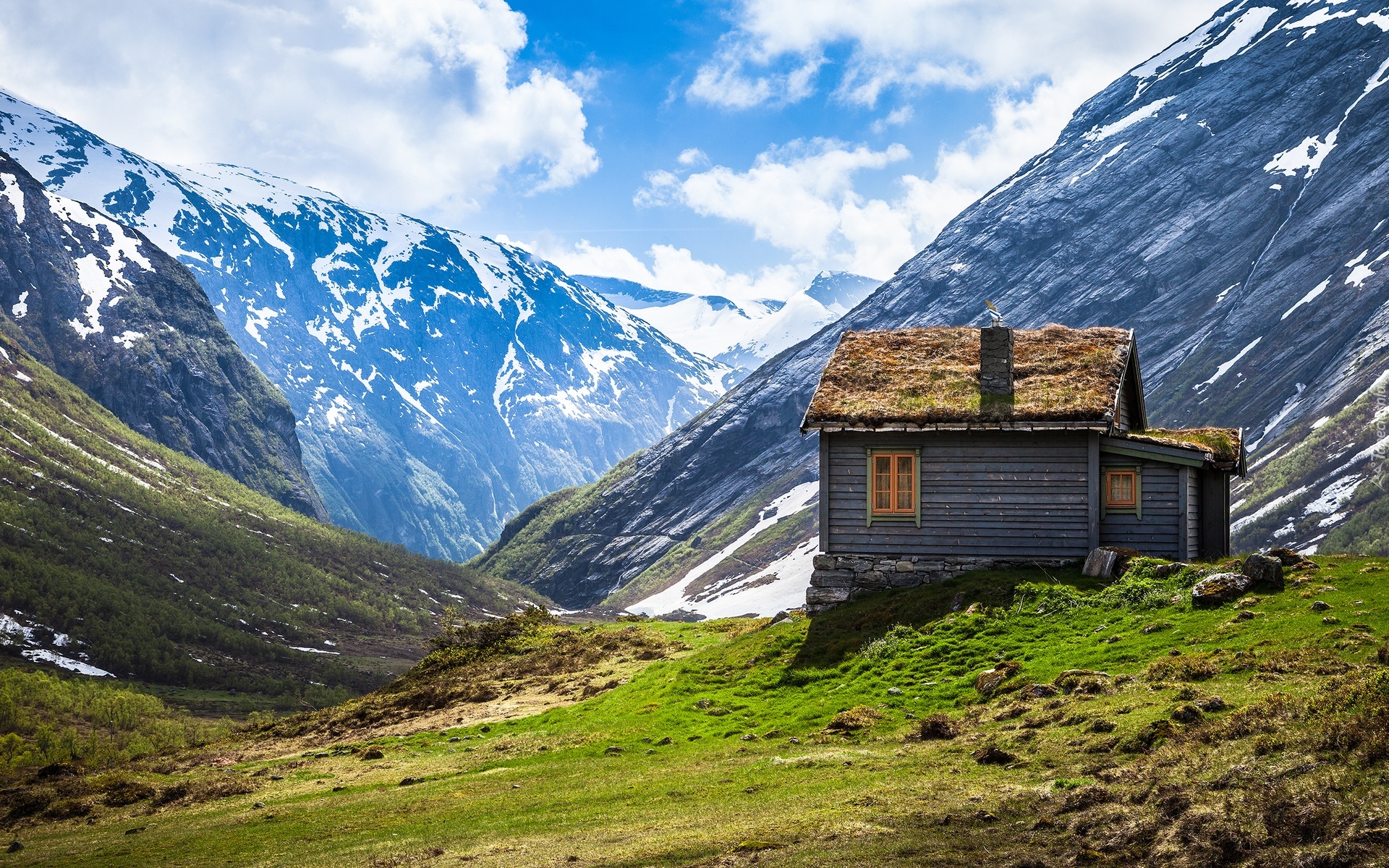 Edytor tapety: Góry, Chata, Chmury