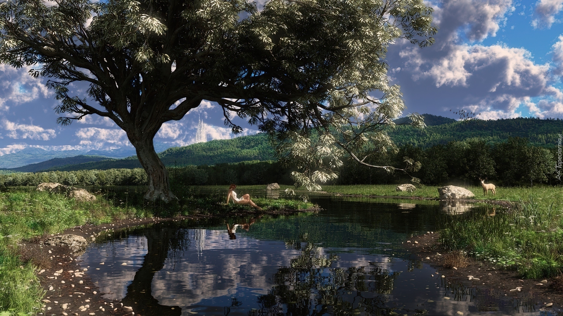 Edytor tapety: Rzeczka, Drzewo, Zieleń, Kobieta