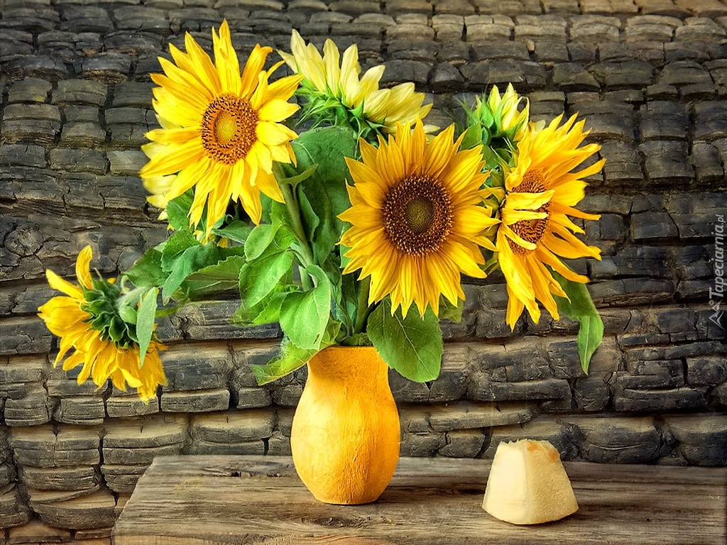 Edytor tapety: Słoneczniki, Wazon, Ściana