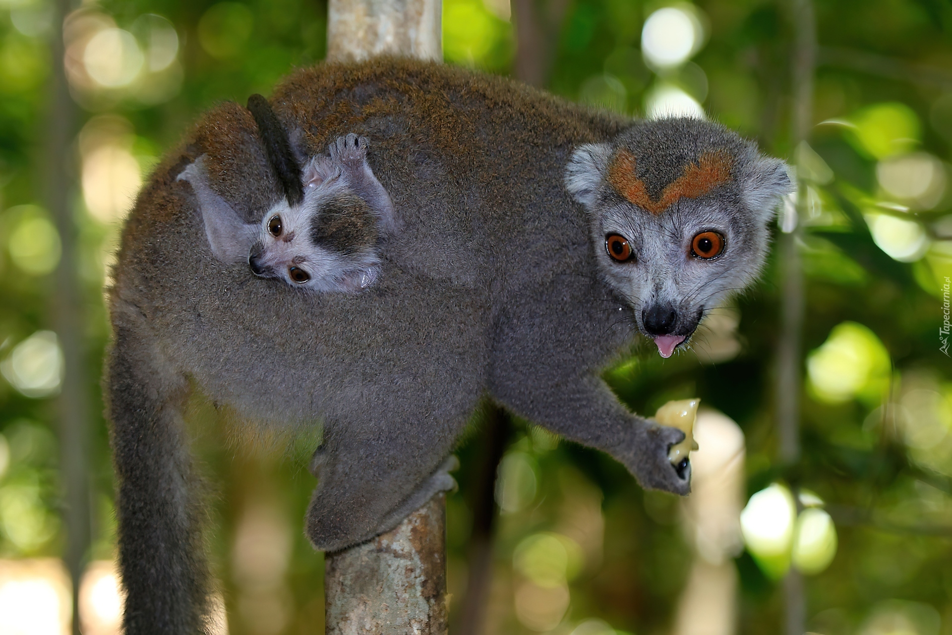 Edytor tapety: Lemur, Młode, Drzewo