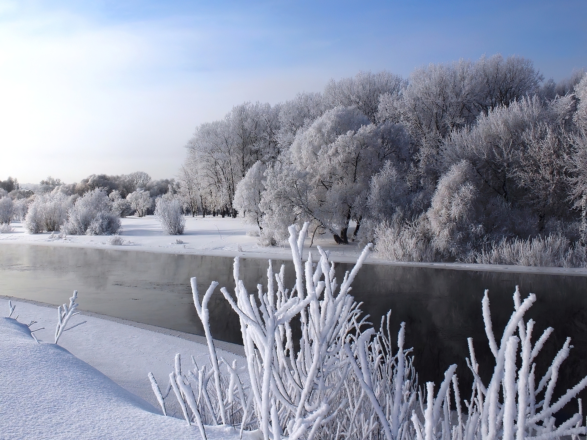 Edytor tapety: Zima, Rzeka, Oszroniony, Krzew