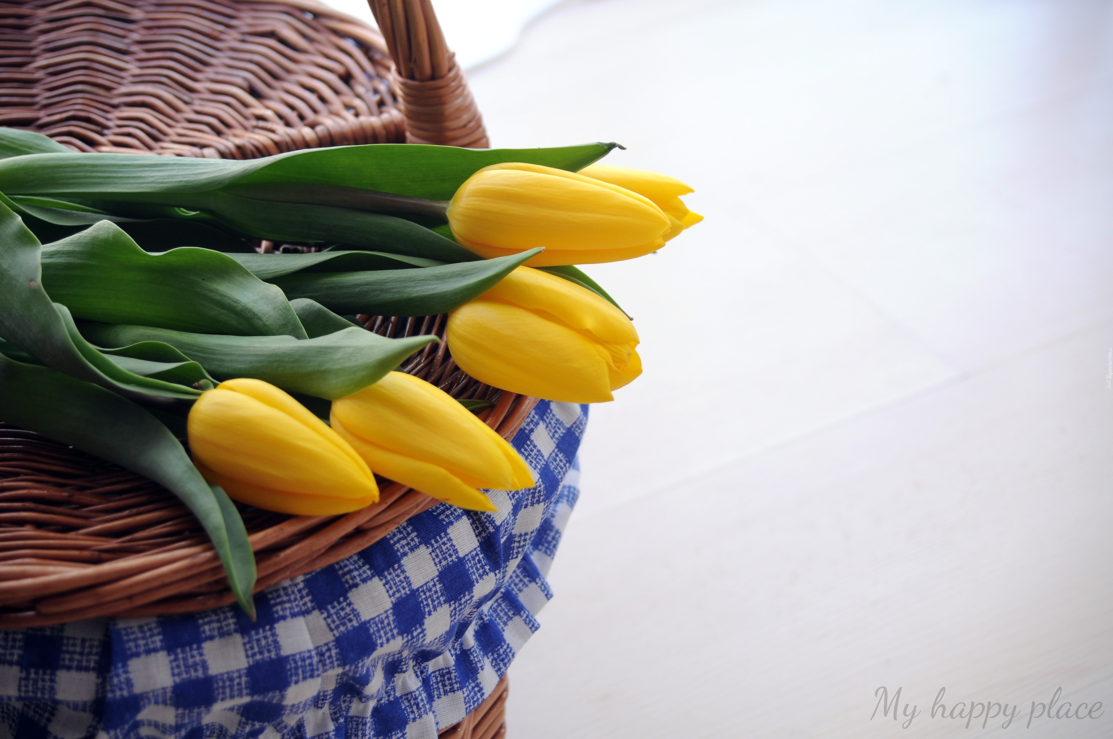 Edytor tapety: Koszyk, Wiklinowy, Żółte, Tulipany
