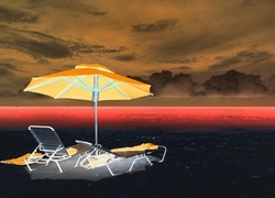 Edytor tapety: Niebo, Morze, Plaża, Leżaki, Parasol, Wakacje
