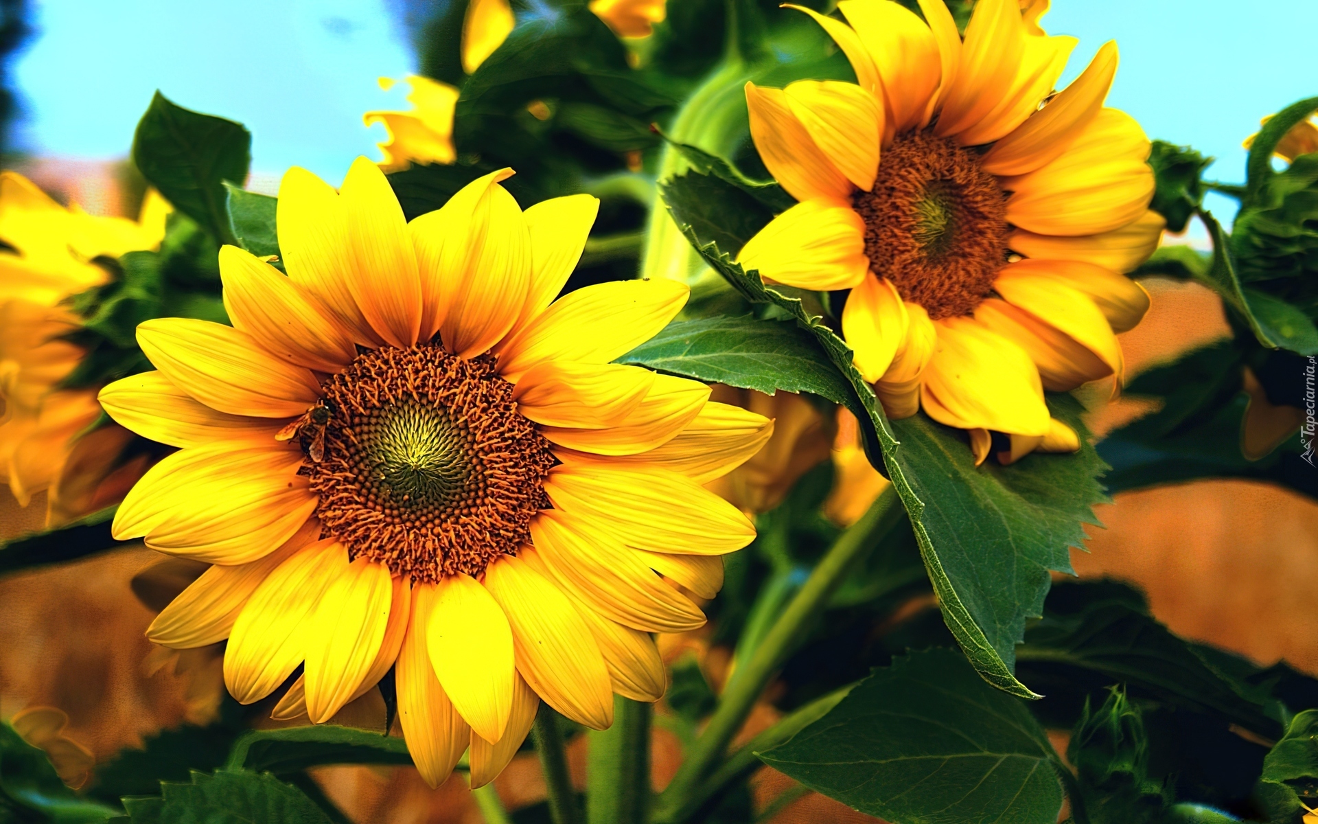 Edytor tapety: Słoneczniki, Liście