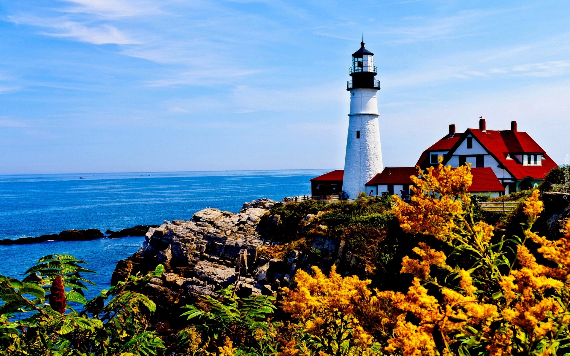 Edytor tapety: Latarnia, Morska, Morze, Skały