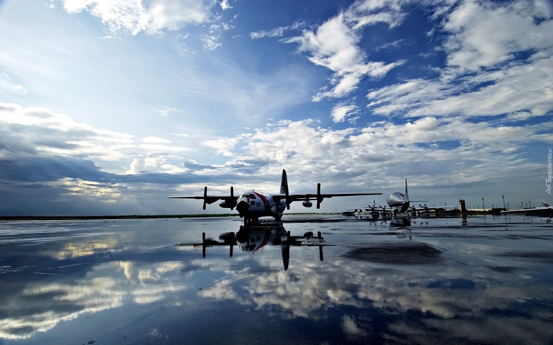 Edytor tapety: Mokra, Płyta, Lotniska, Samoloty, Niebo, Odbicie