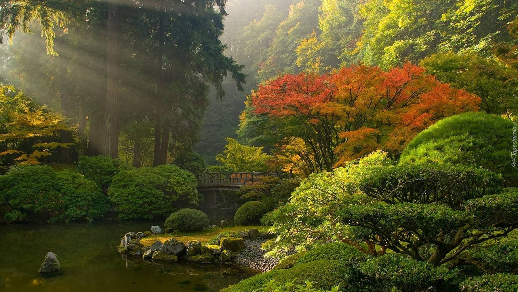 Edytor tapety: Mostek, Rzeczka, Drzewa, Krzewy