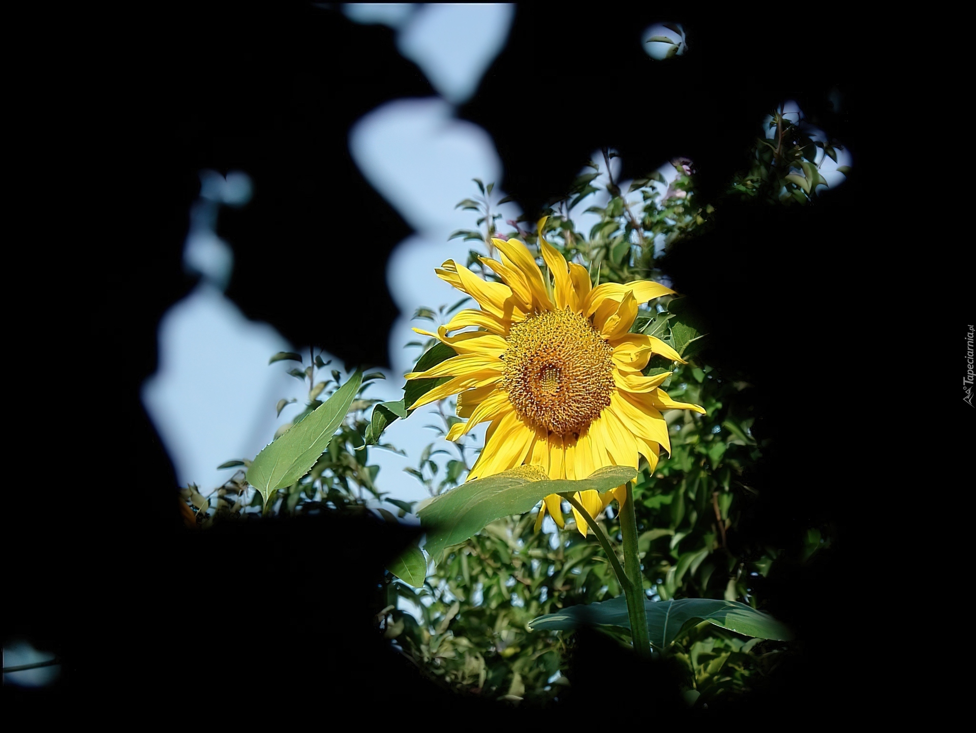 Edytor tapety: Słonecznik, Liście, Tło, Czarne