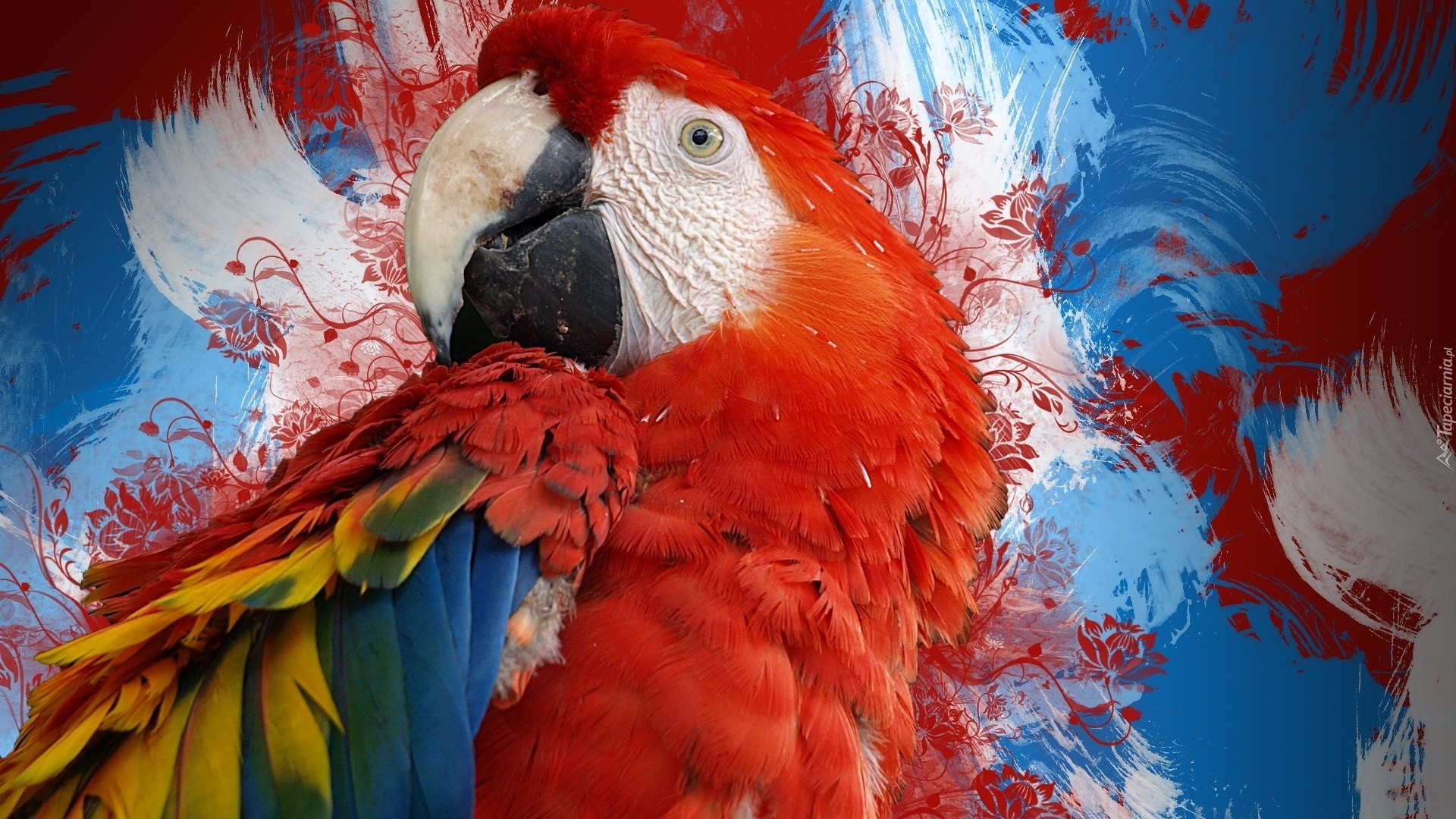 Edytor tapety: Papuga, Kolorowe, Pióra