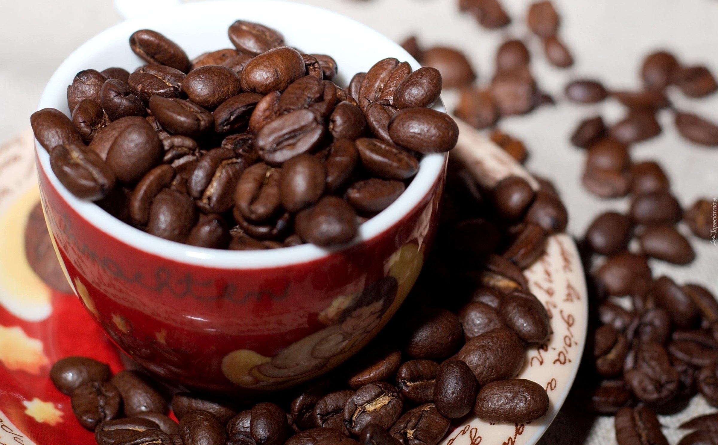Edytor tapety: Spodek, Filiżanka, Ziarna, Kawy