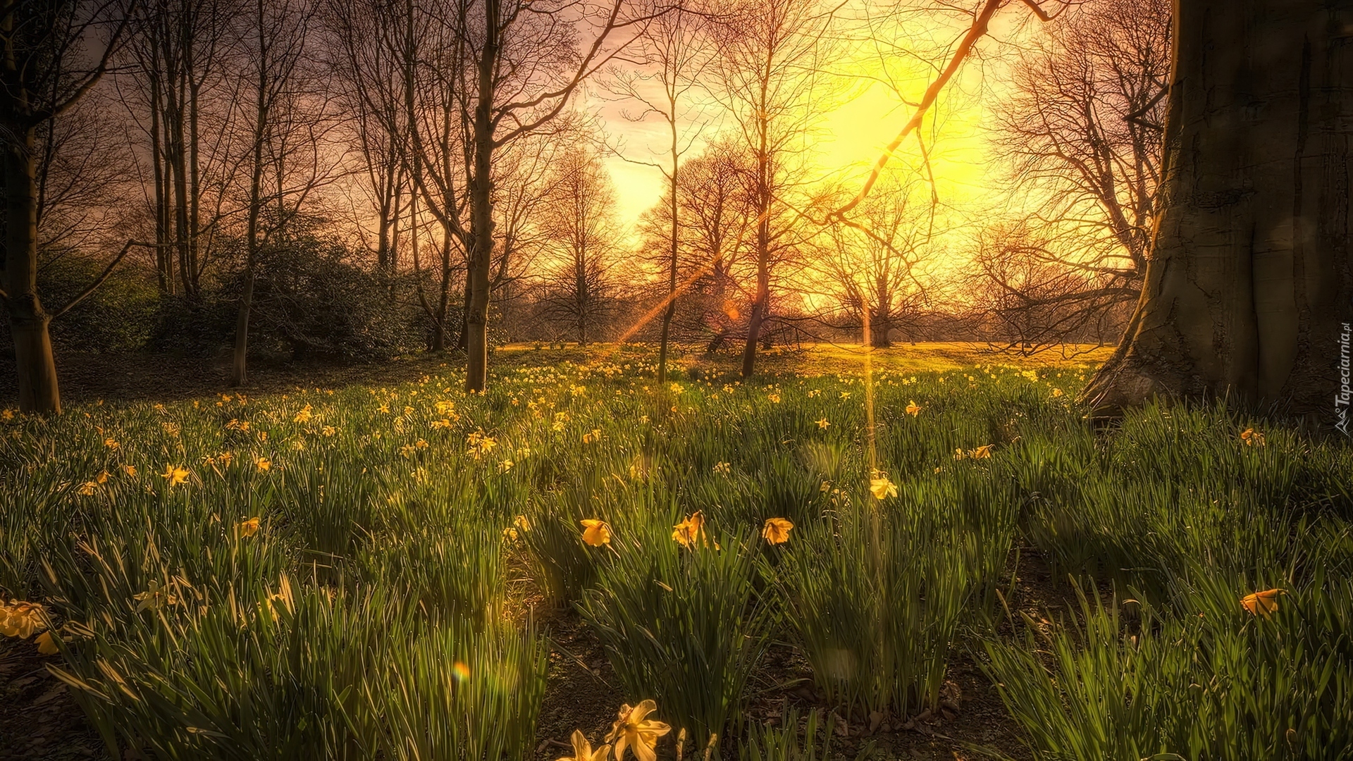 Edytor tapety: Trawa, Żonkile, Promienie, Słońca