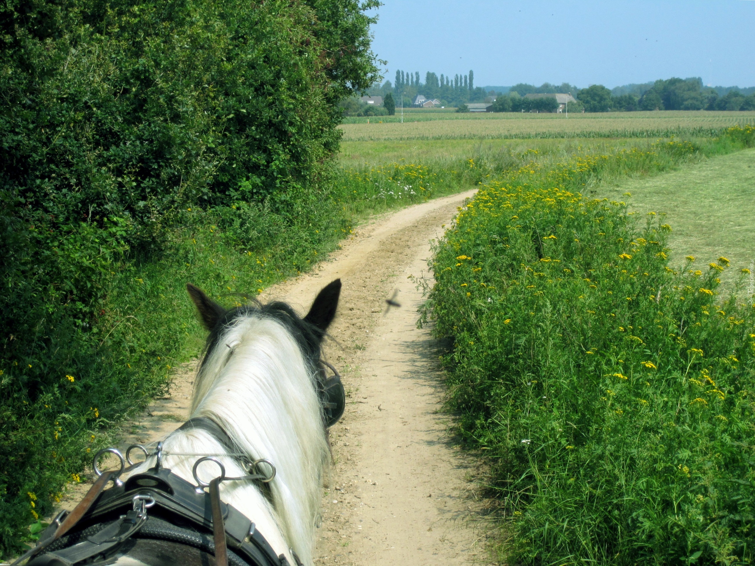 Edytor tapety: Koń, Zaprzęg, Droga, Zieleń