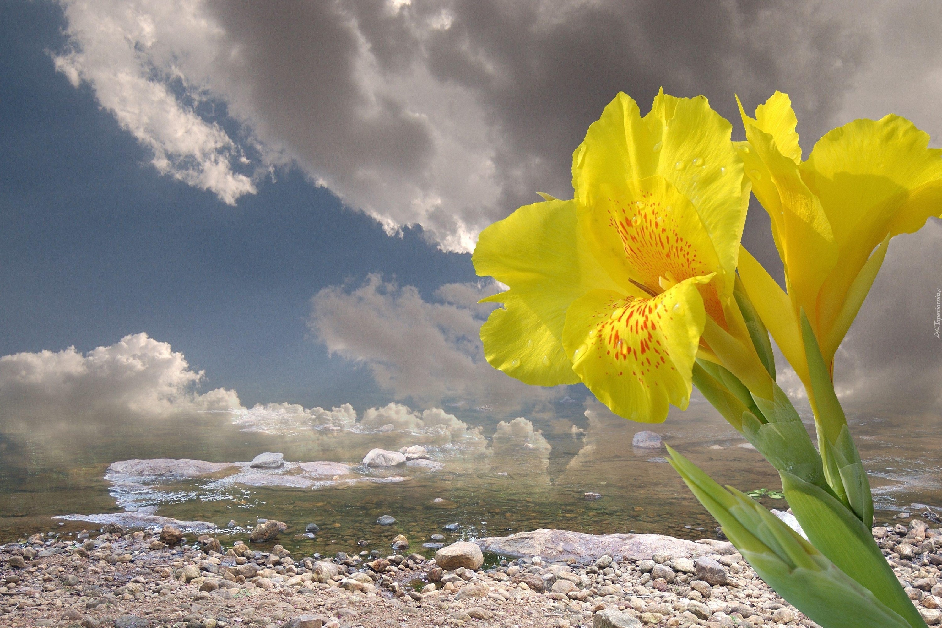 Edytor tapety: Żółty, Irys, Morze, Chmury