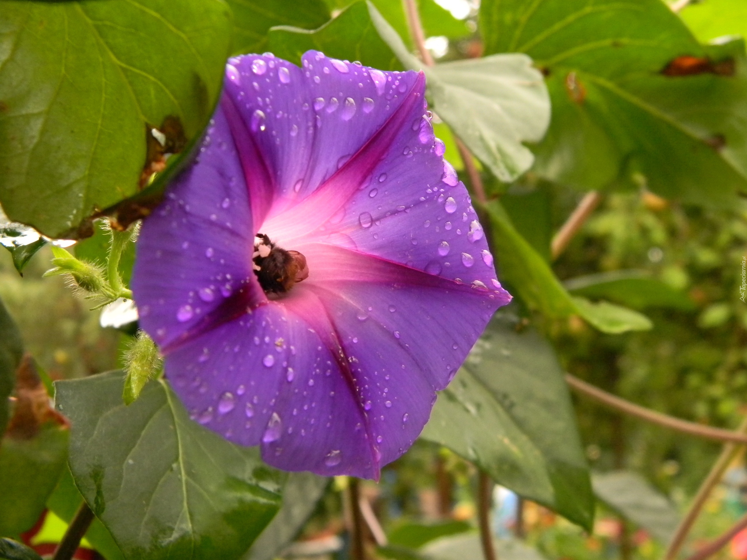 Edytor tapety: Fioletowy, Powój, Krople, Wody