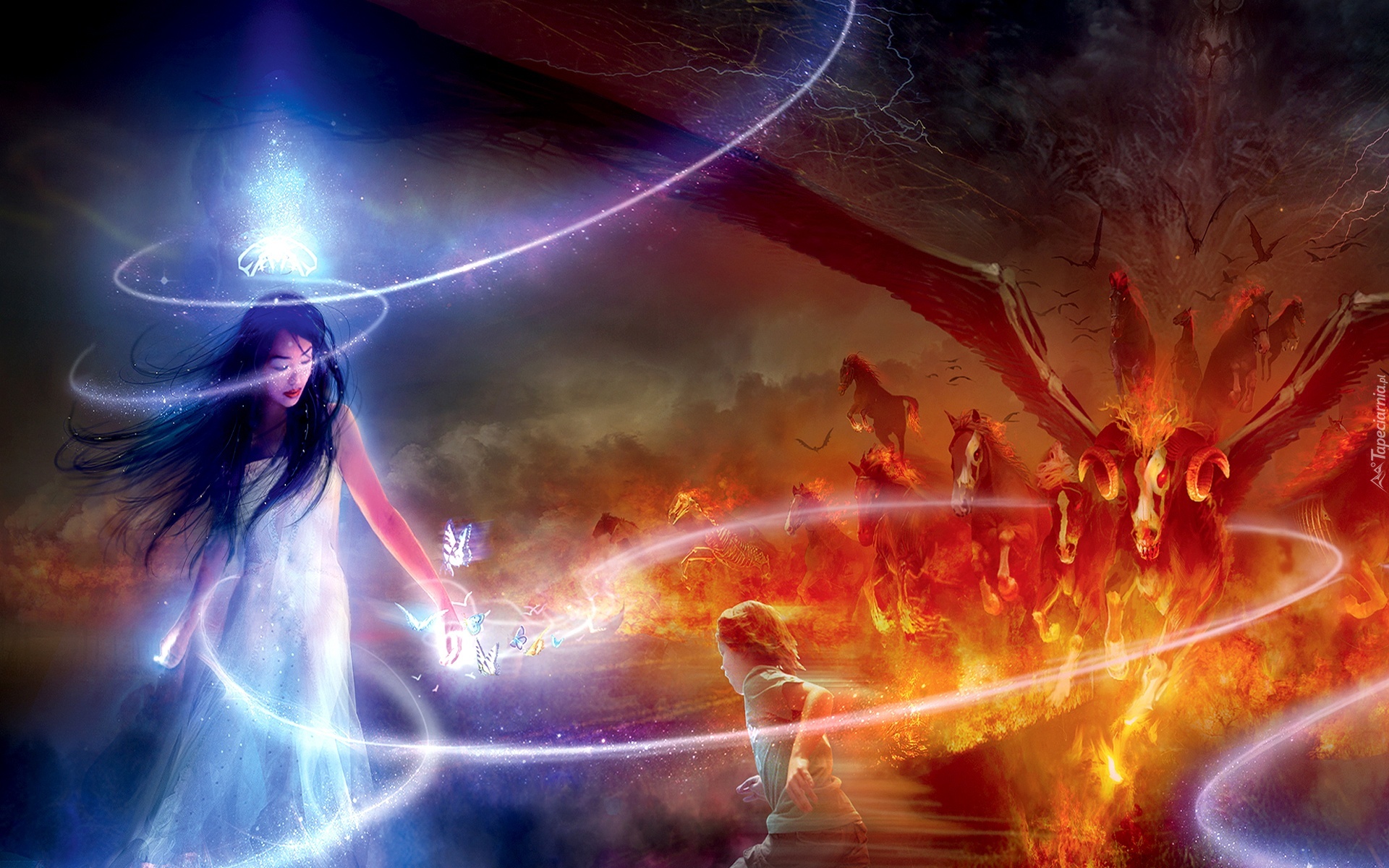 Edytor tapety: Kobieta, Dziecko, Konie, Fantasy