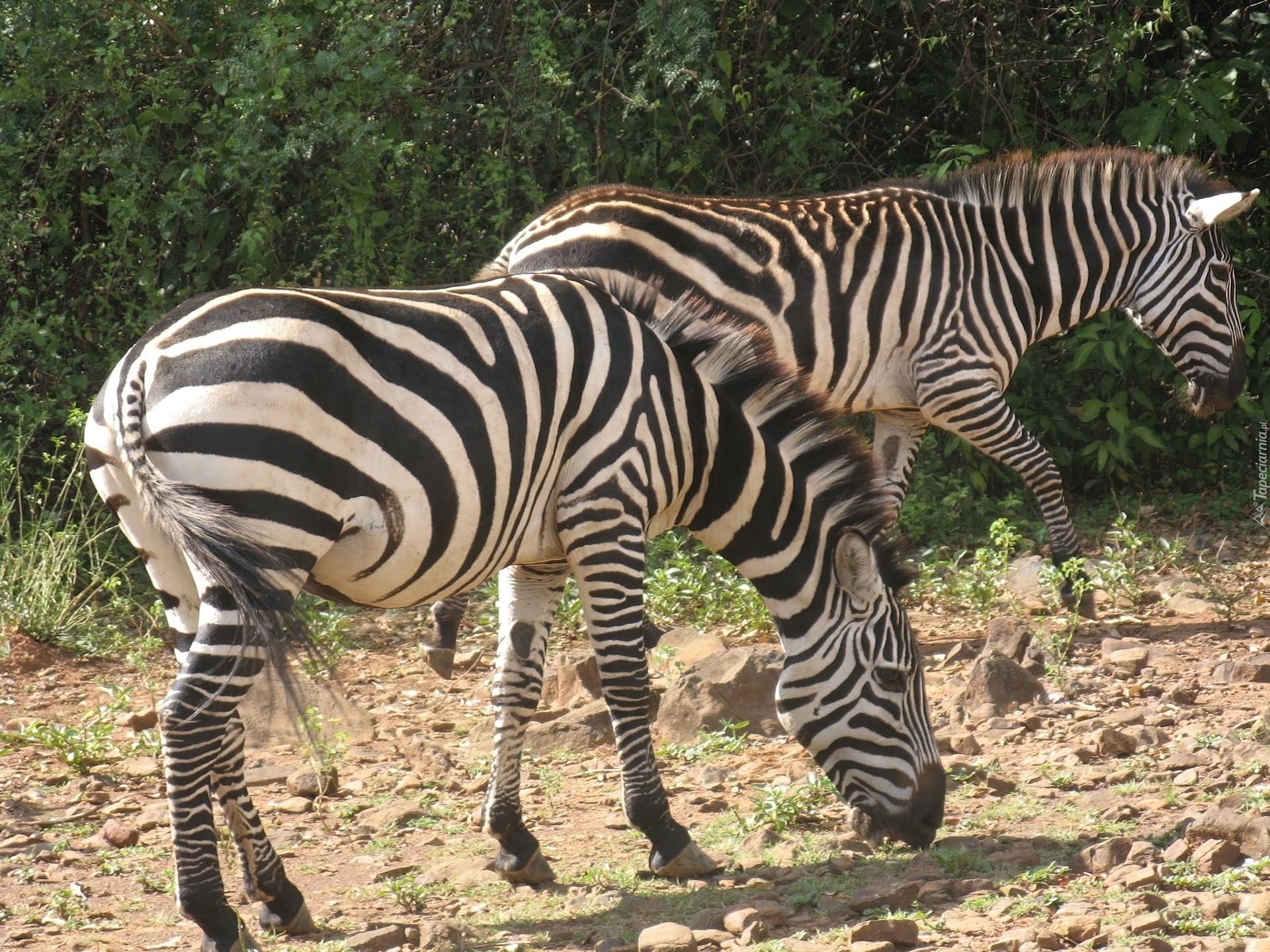 Edytor tapety: Dwie, Zebry, Wypas