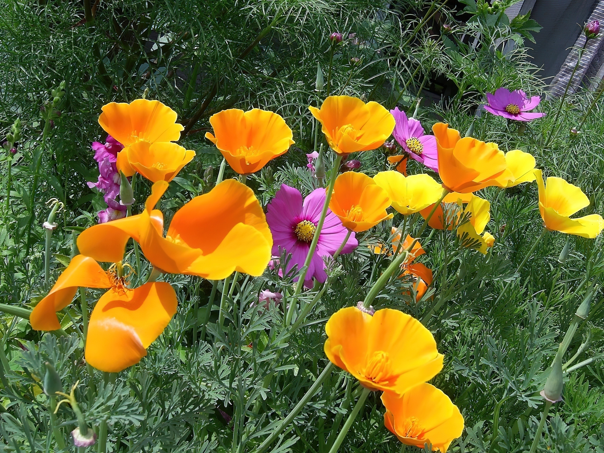 Edytor tapety: Fioletowa, Kosmea, Żółte, Kwiaty