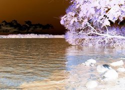 Edytor tapety: Jezioro, Pochylone, Drzewo, Lato