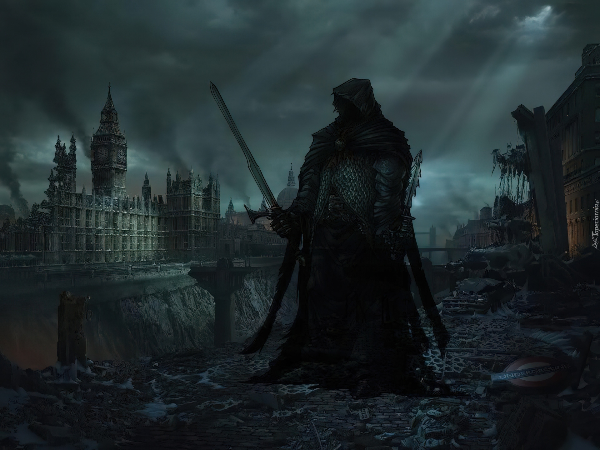 Edytor tapety: Londyn, Ruiny, Czarna, Postać, Mrok