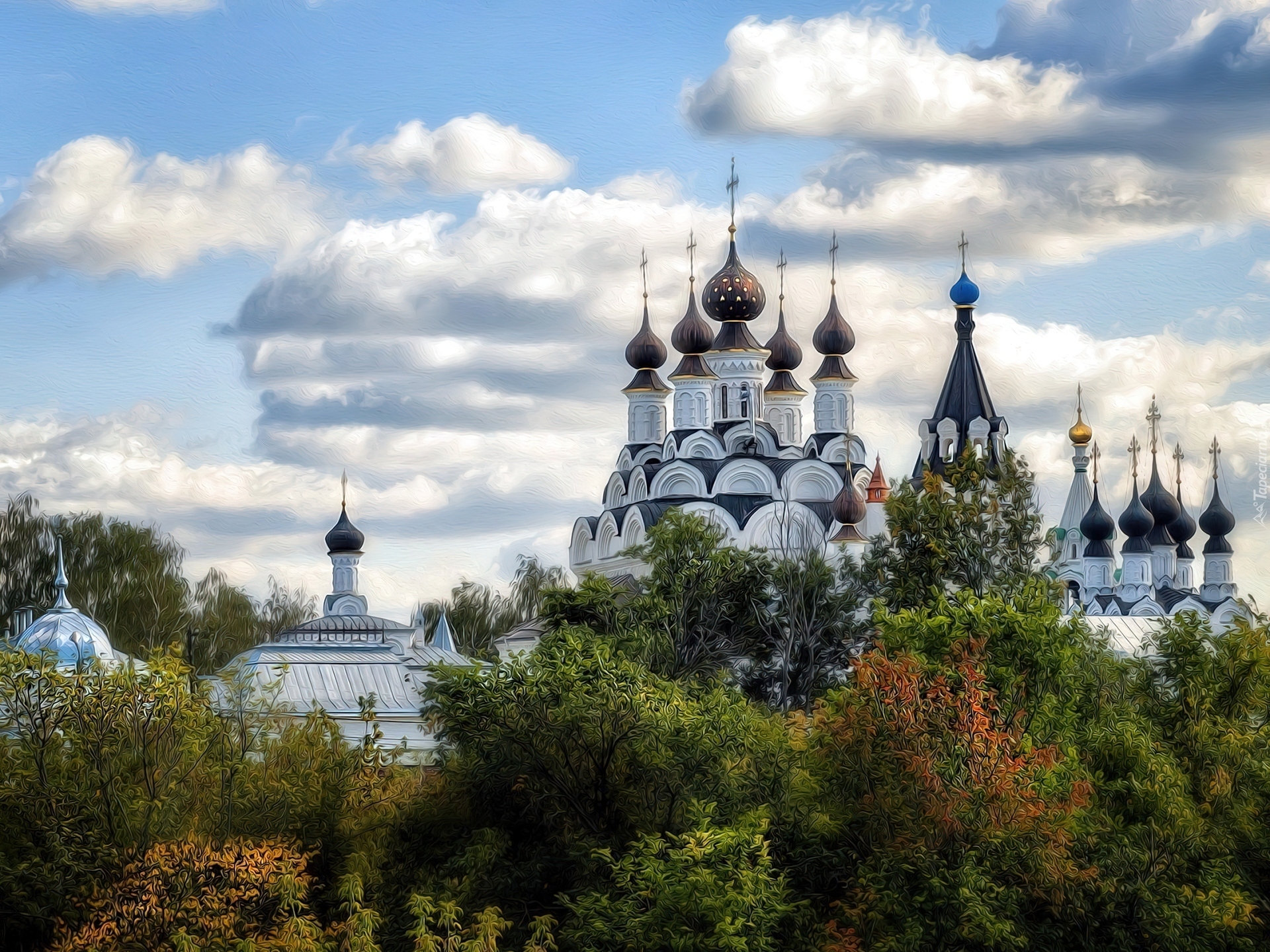 Edytor tapety: Cerkiew, Chmury, Zieleń, Art