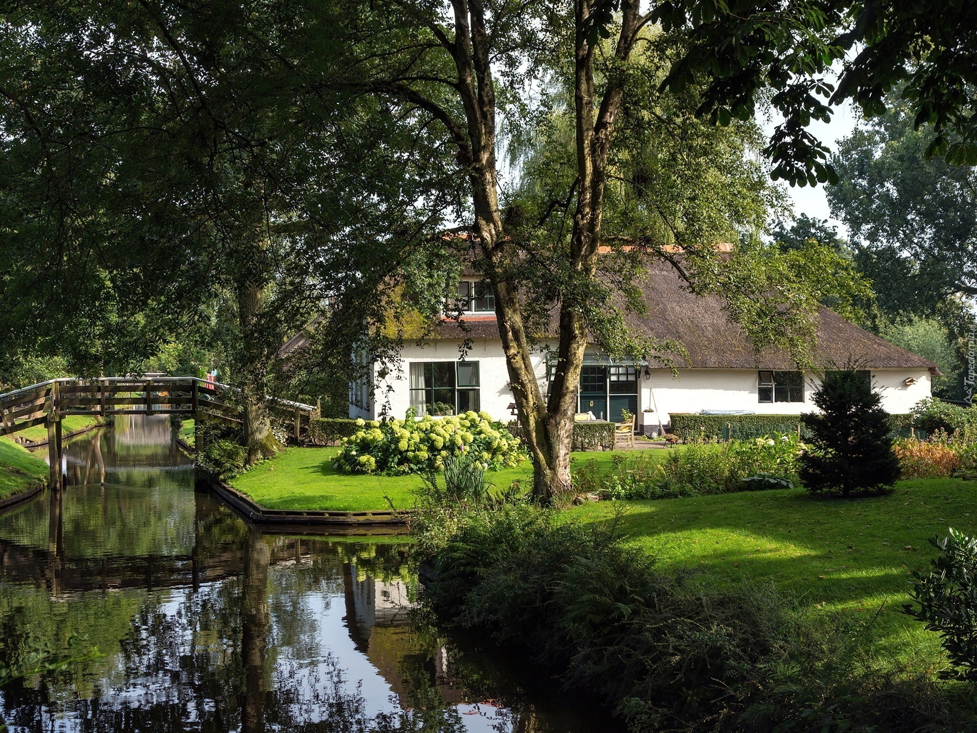 Edytor tapety: Rzeczka, Mostek, Dom, Zieleń