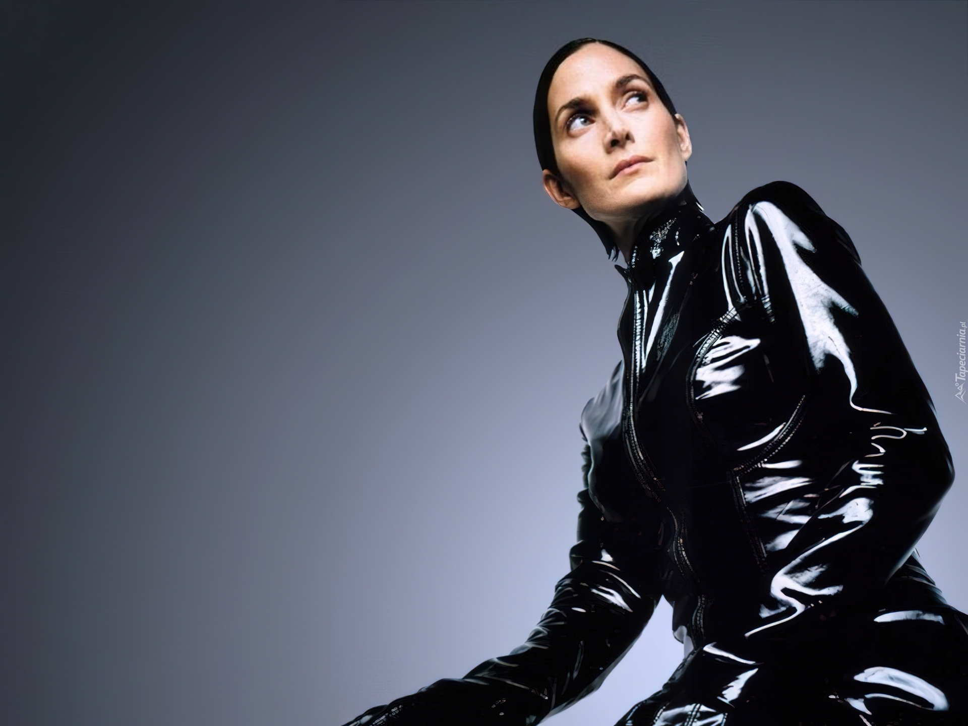 Edytor tapety: Carrie Anne Moss, Czarny, Skórzany Strój