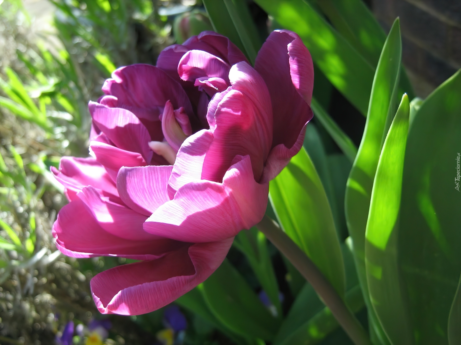 Edytor tapety: Różowy, Pełny, Tulipan, Liście