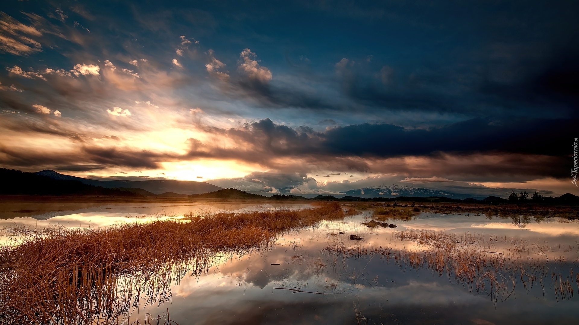 Edytor tapety: Chmury, Góry, Zachód, Słońca, Woda