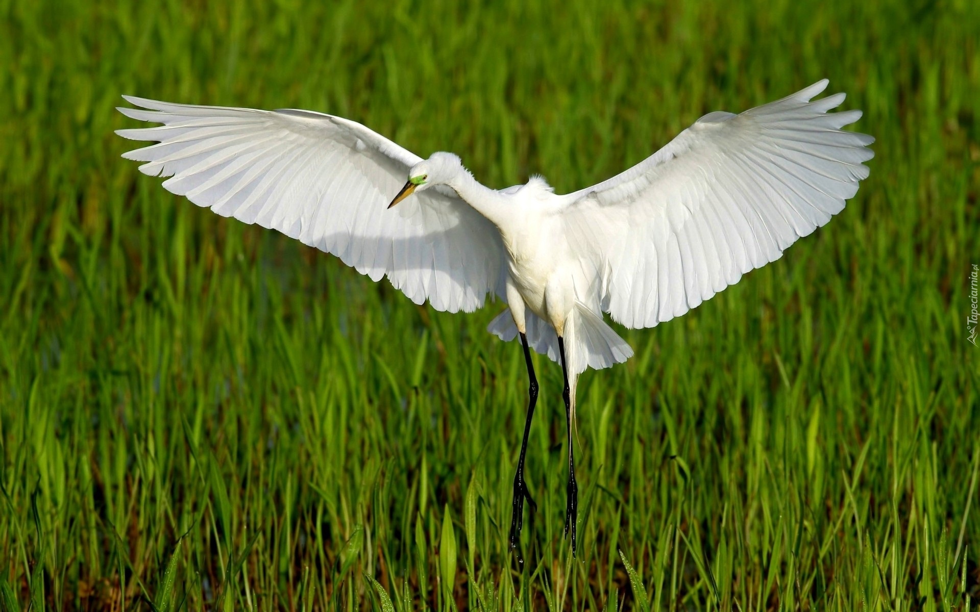 Edytor tapety: Bagno, Zielona, Trawa, Czapla