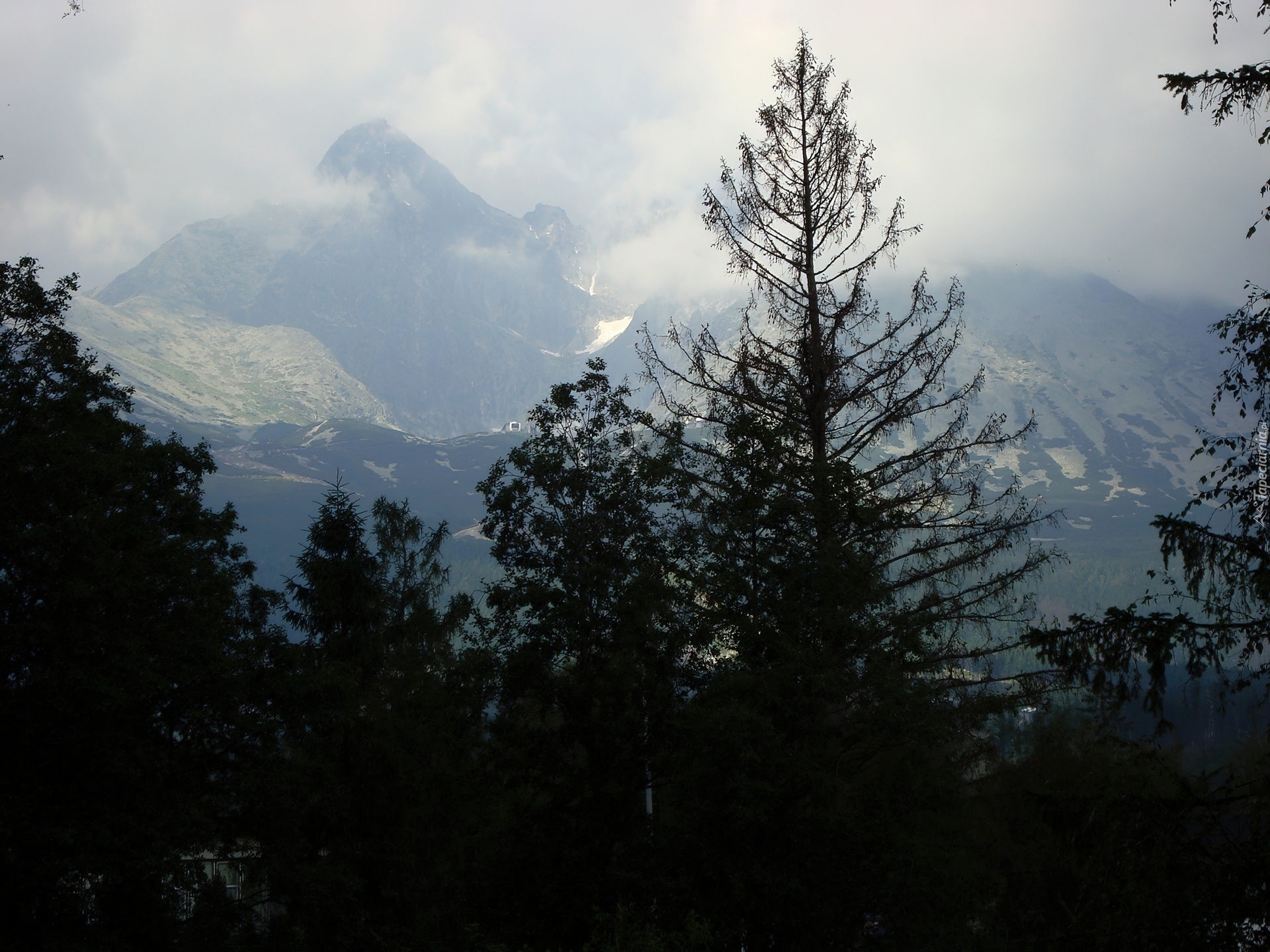 Edytor tapety: Góry, Zaśnieżone, Szczyty, Drzewa