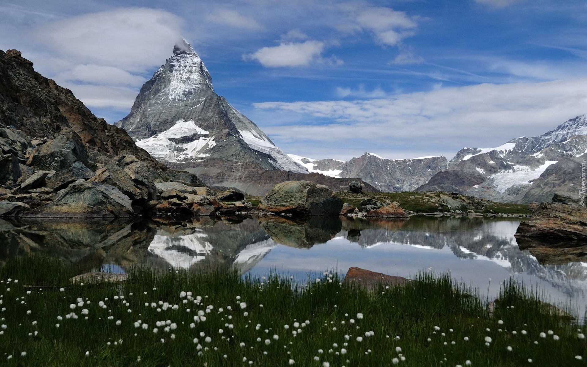 Edytor tapety: Jezioro, Górskie, Szczyty, Łąka