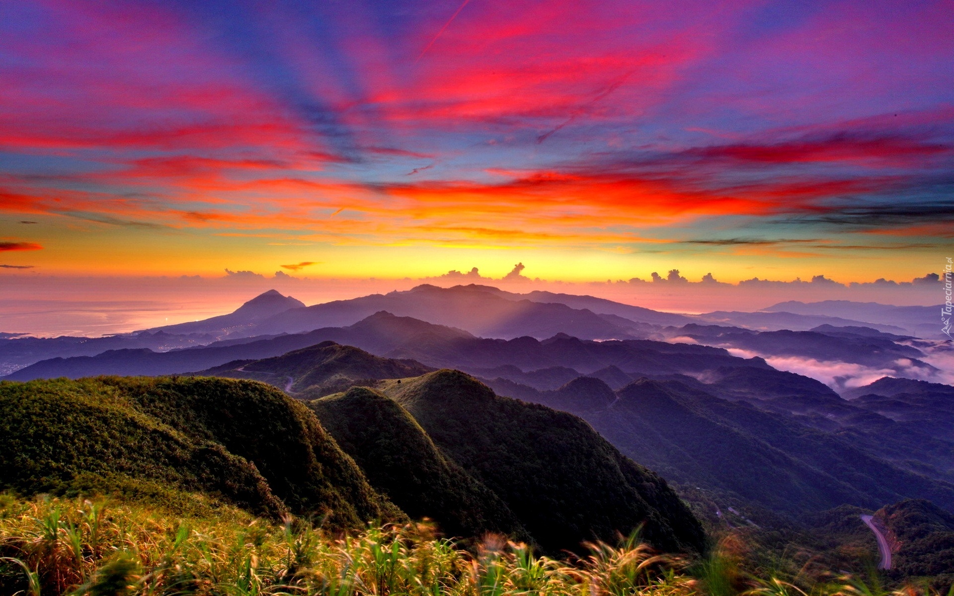 Edytor tapety: Zachód Słońca, Nad, Górami