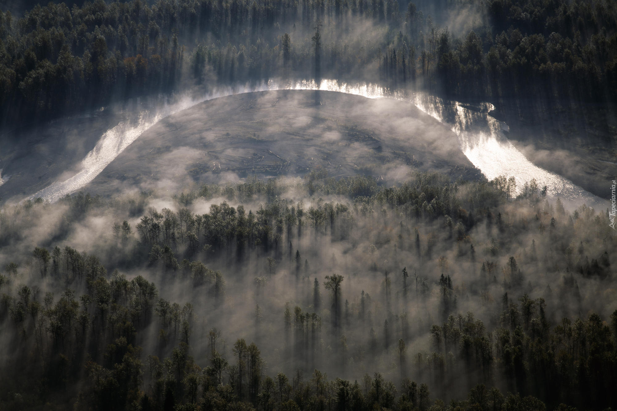 Edytor tapety: Poranna, Mgła, Lasy, Rzeka