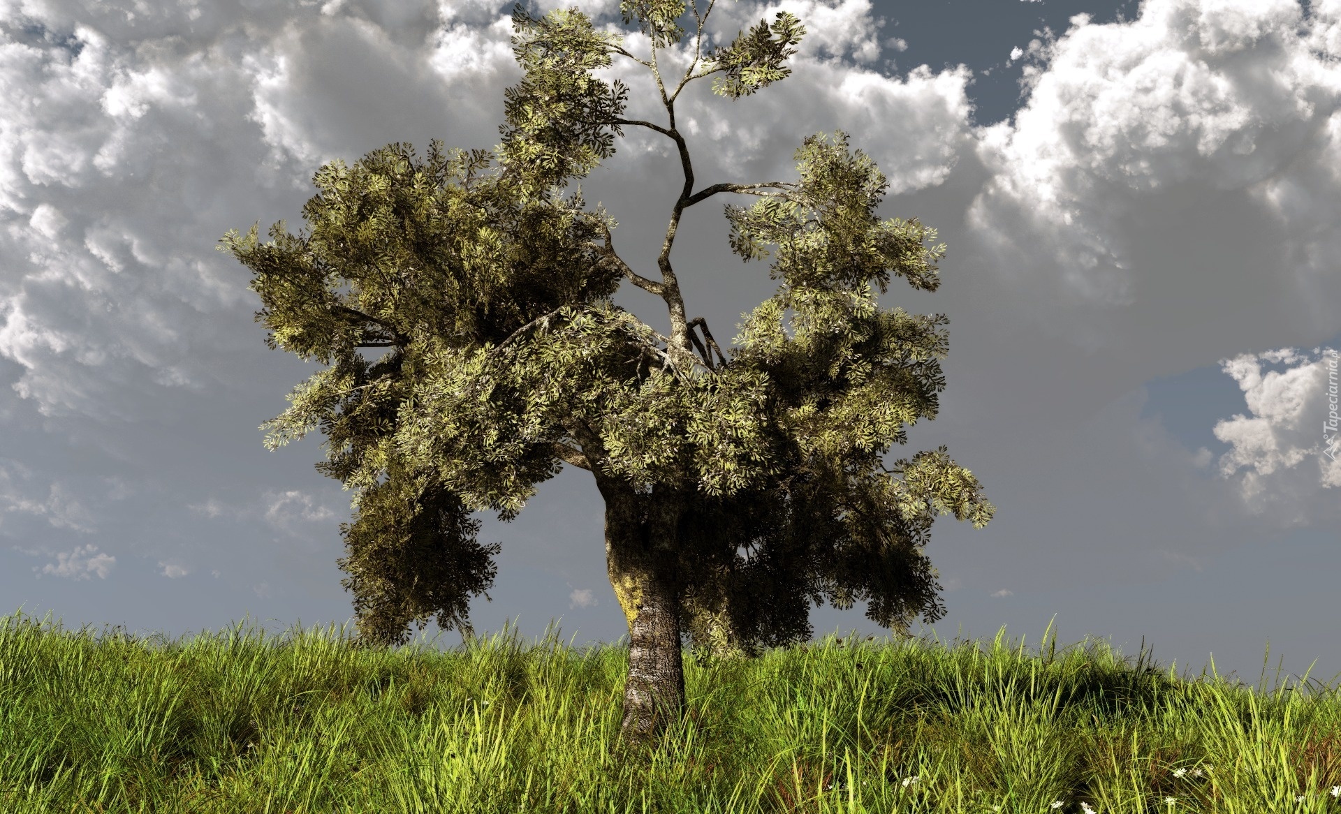 Edytor tapety: Drzewo, Łąka, Chmury
