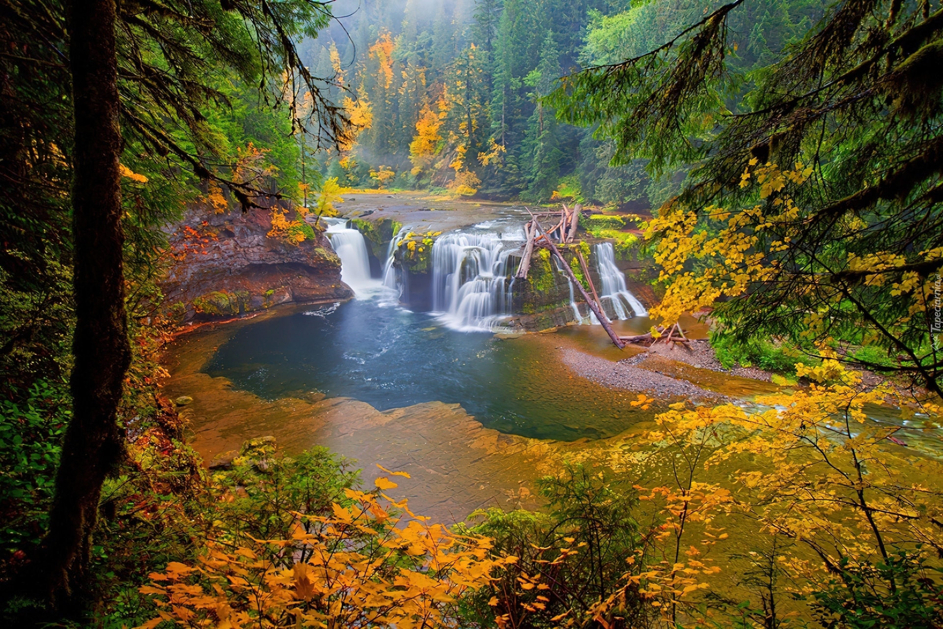Edytor tapety: Wodospad, W, Lesie, Jesień