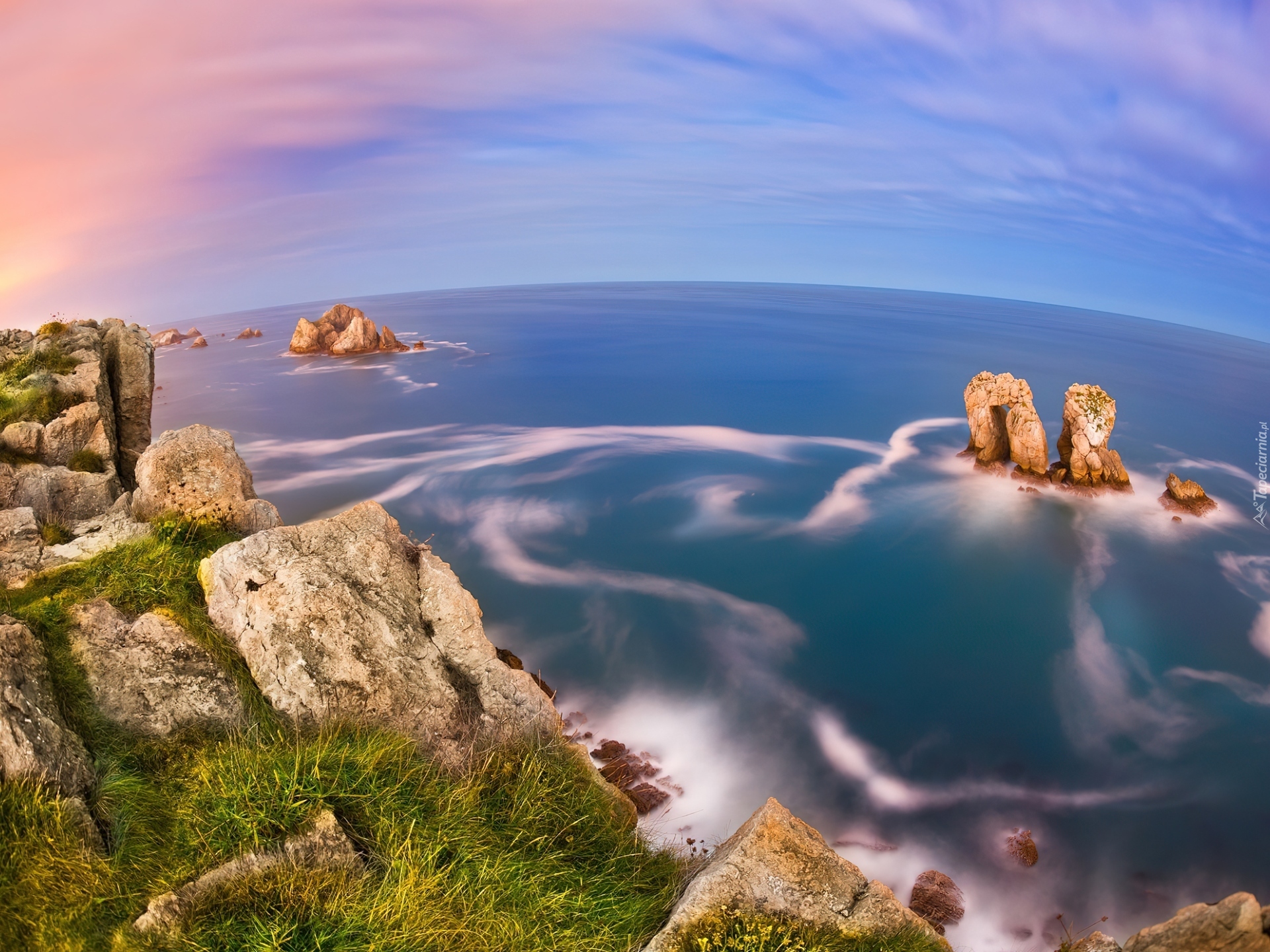 Edytor tapety: Ocean, Skały, Horyzont, Niebo