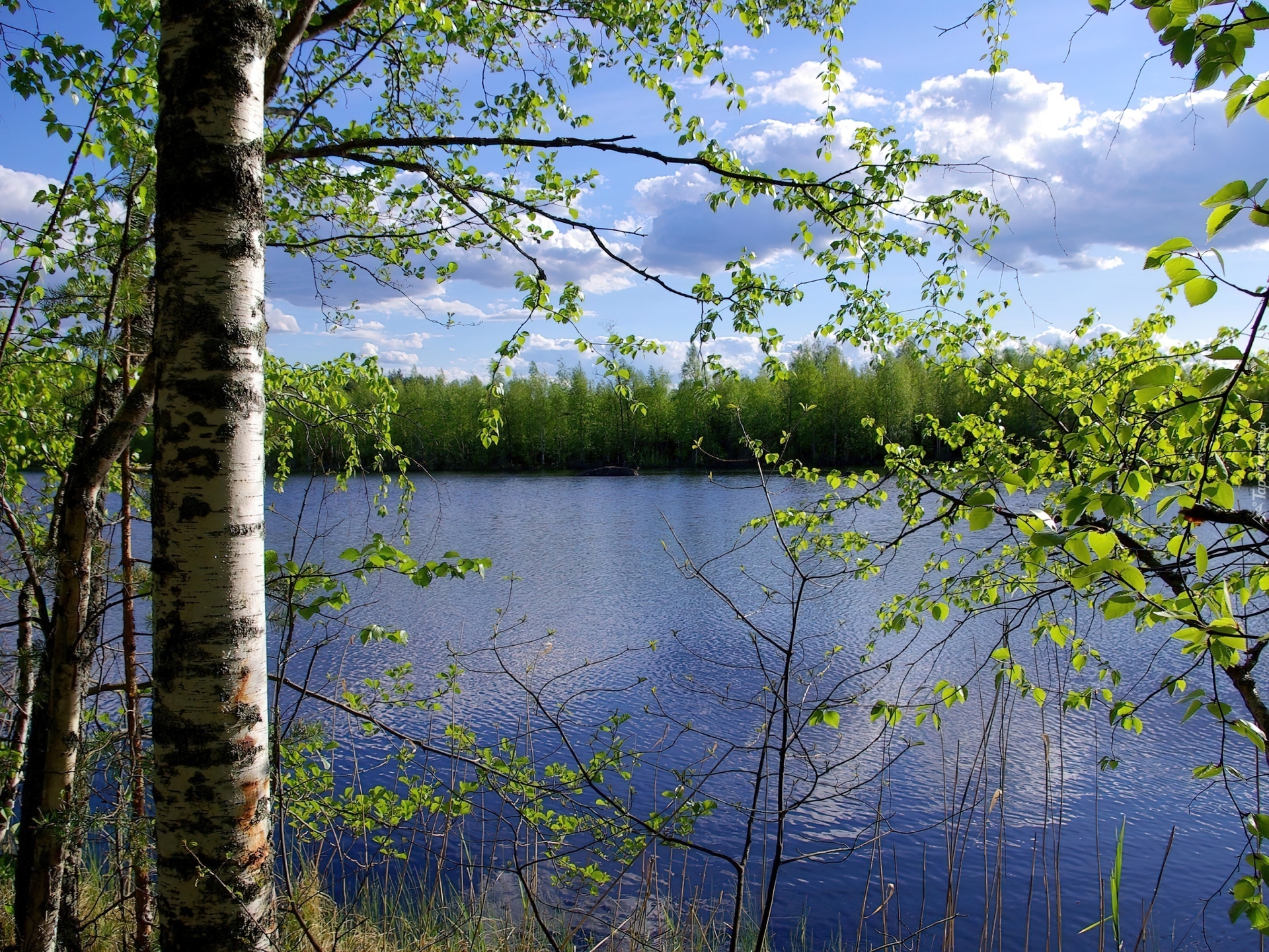 Edytor tapety: Drzewa, Brzozy, Jezioro