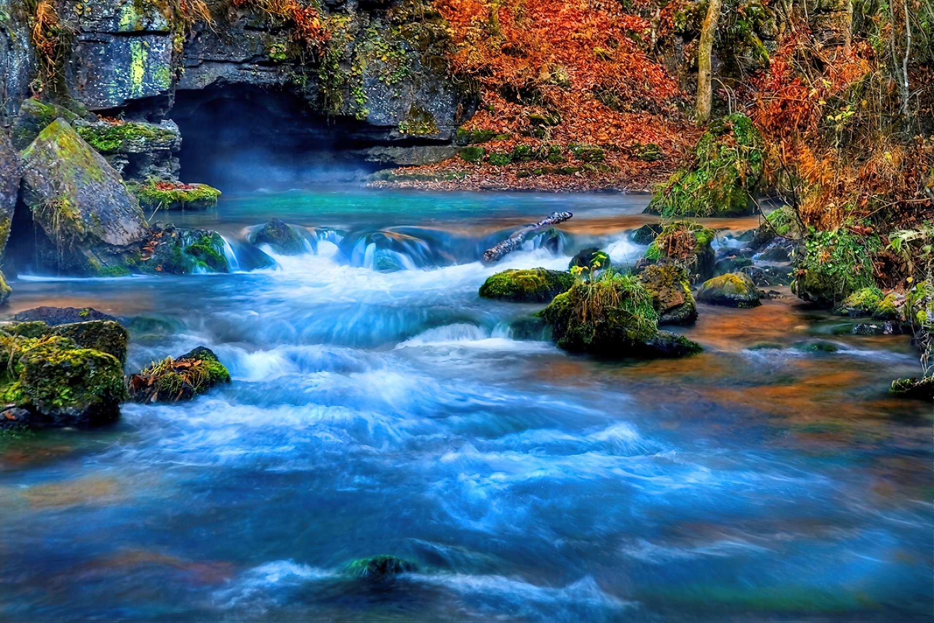 Edytor tapety: Las, Strumień, Kamienie