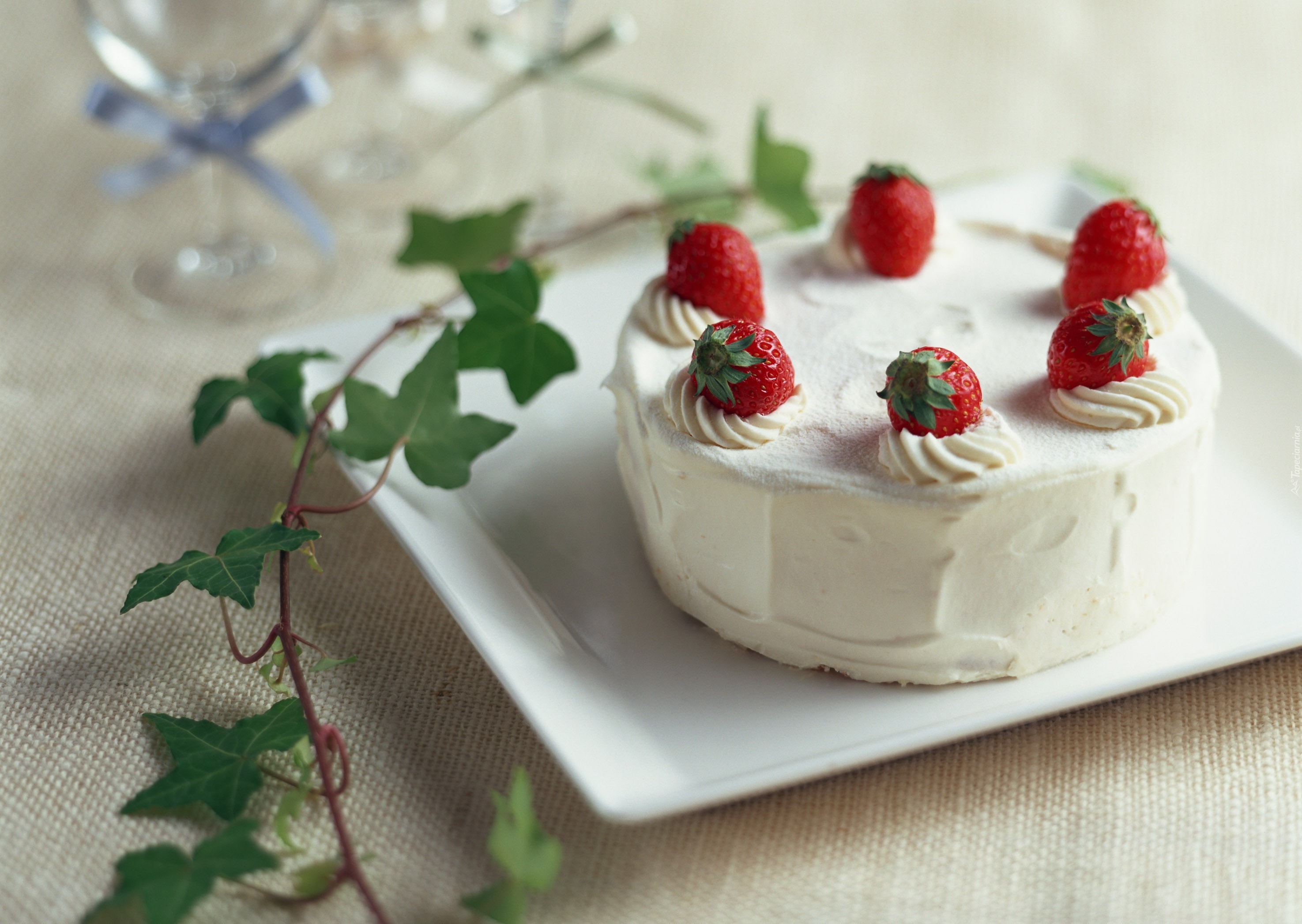 Edytor tapety: Tort, Śmietanowy, Truskawki