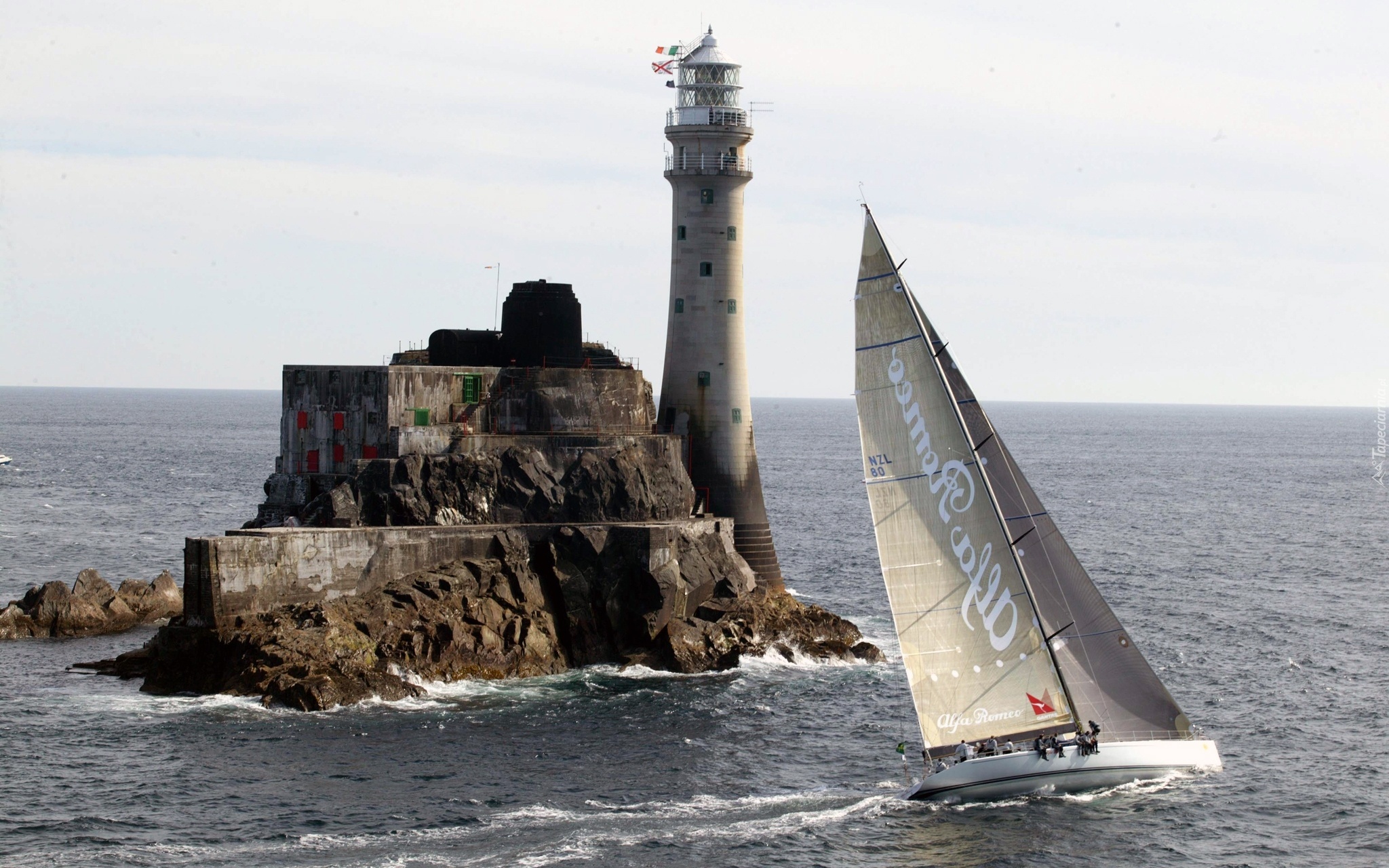 Edytor tapety: Latarnia Morska, Na, Skale, Jacht