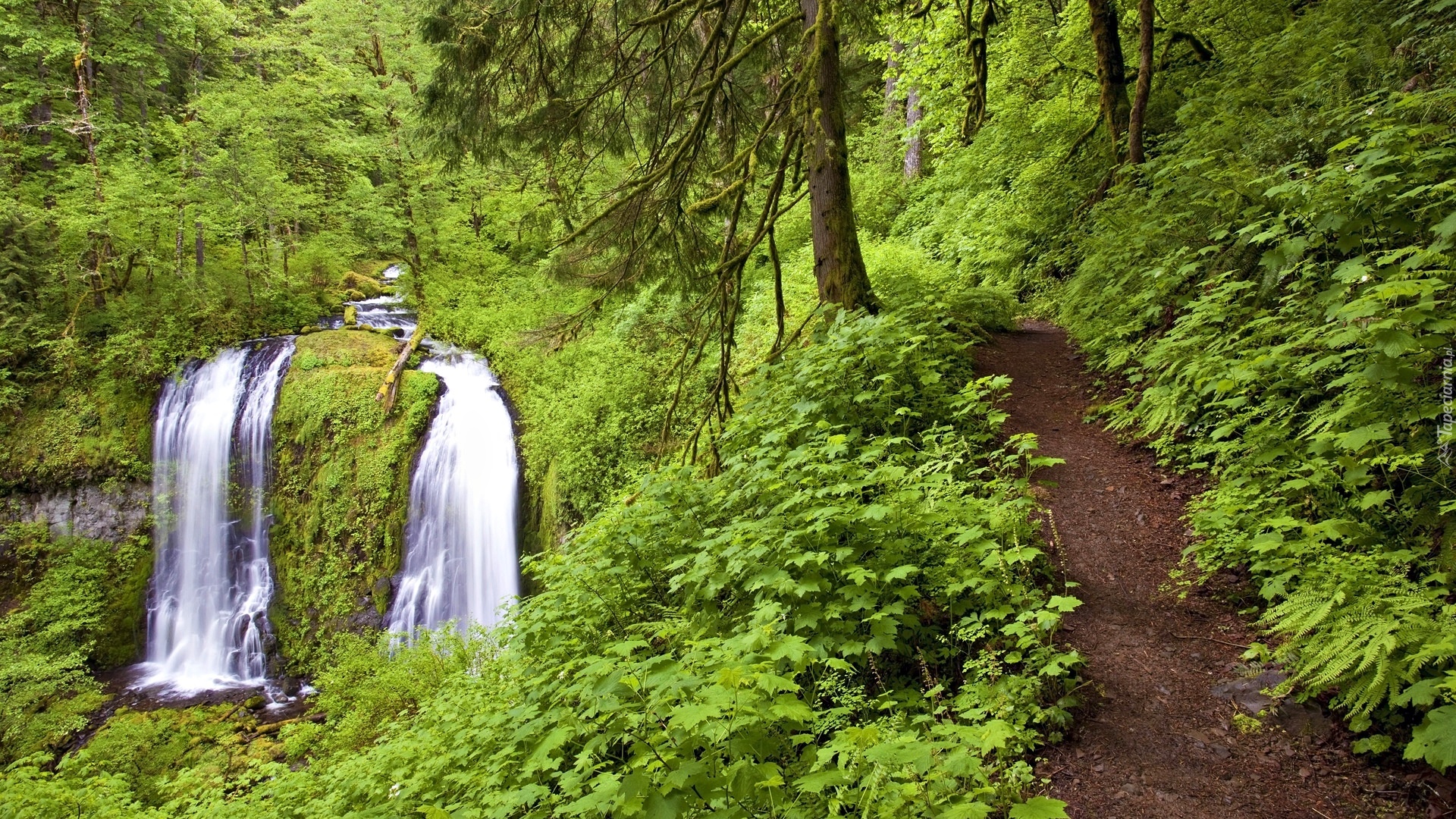 Edytor tapety: Las, Rzeka, Wodospad, Ścieżka