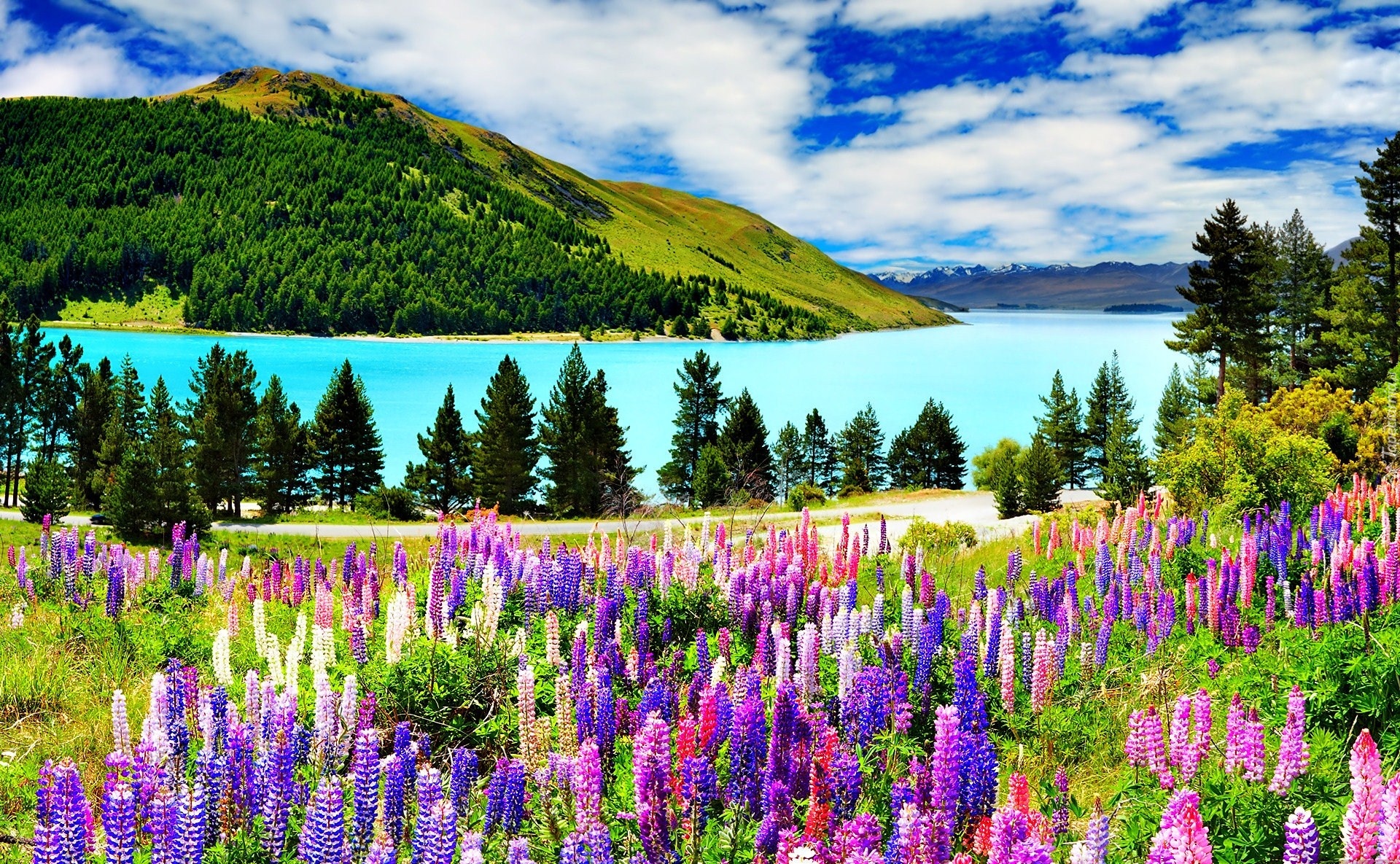 Edytor tapety: Kolorowy, Łubin, Wzgórza