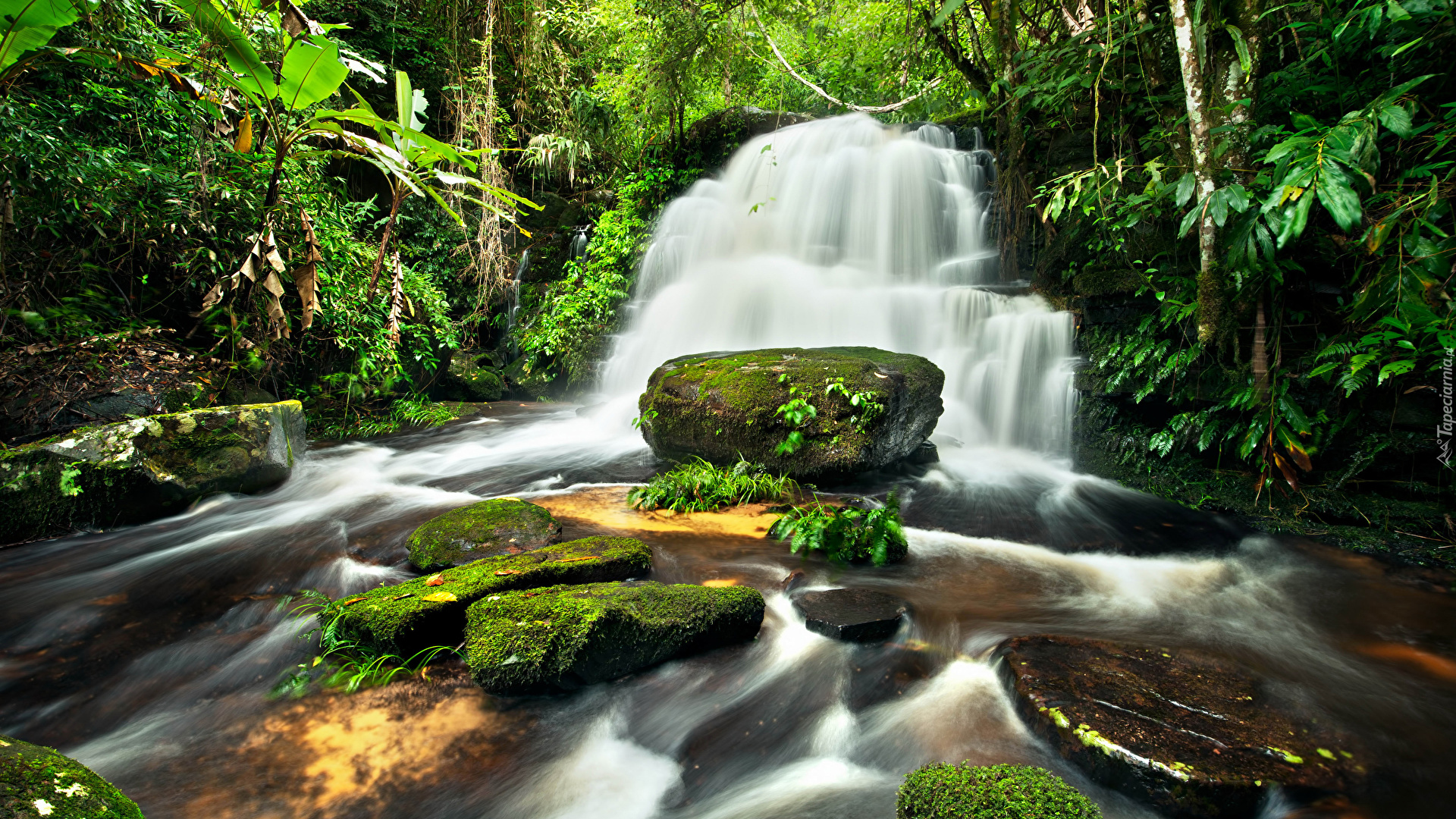 Edytor tapety: Dżungla, Wodospad, Kamienie
