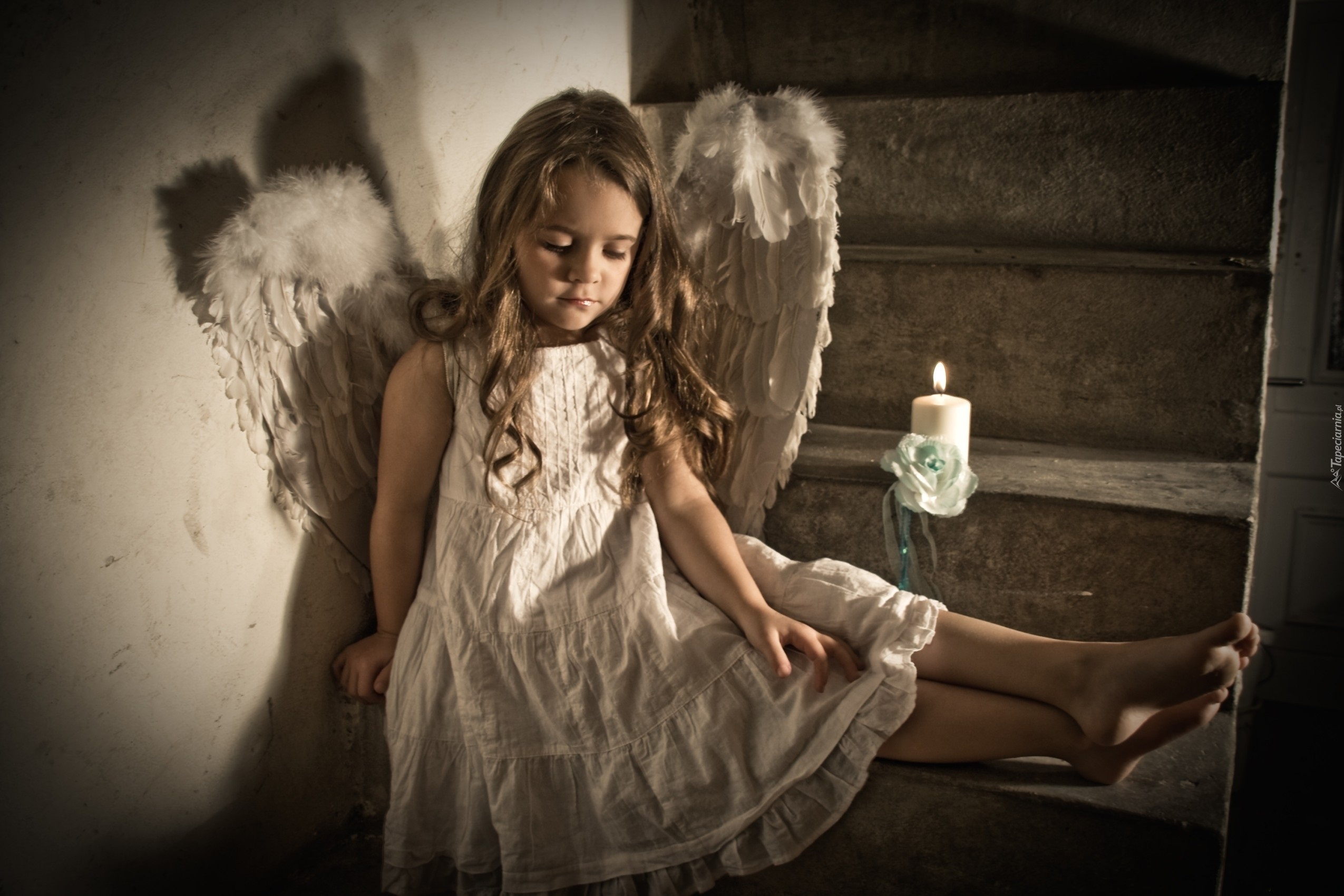 Edytor tapety: Schody, Mała, Dziewczynka, Anioł