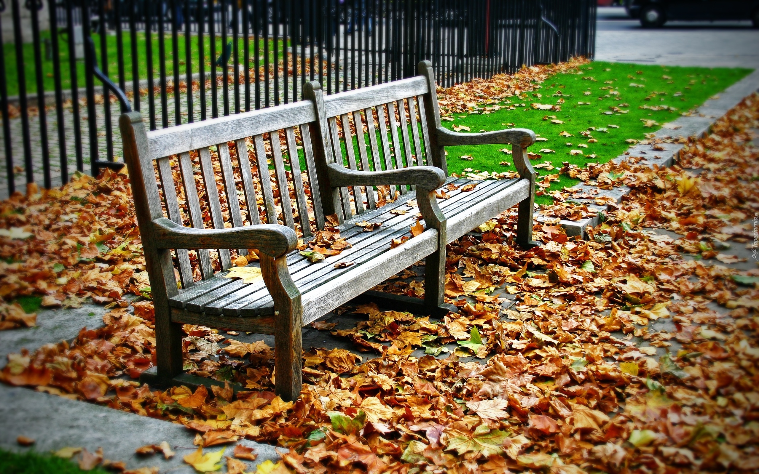 Edytor tapety: Ławka, Jesienne, Liście