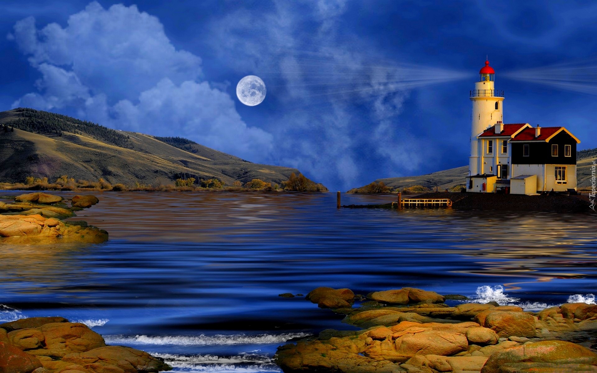Edytor tapety: Brzeg, Morza, Skały, Latarnia morska