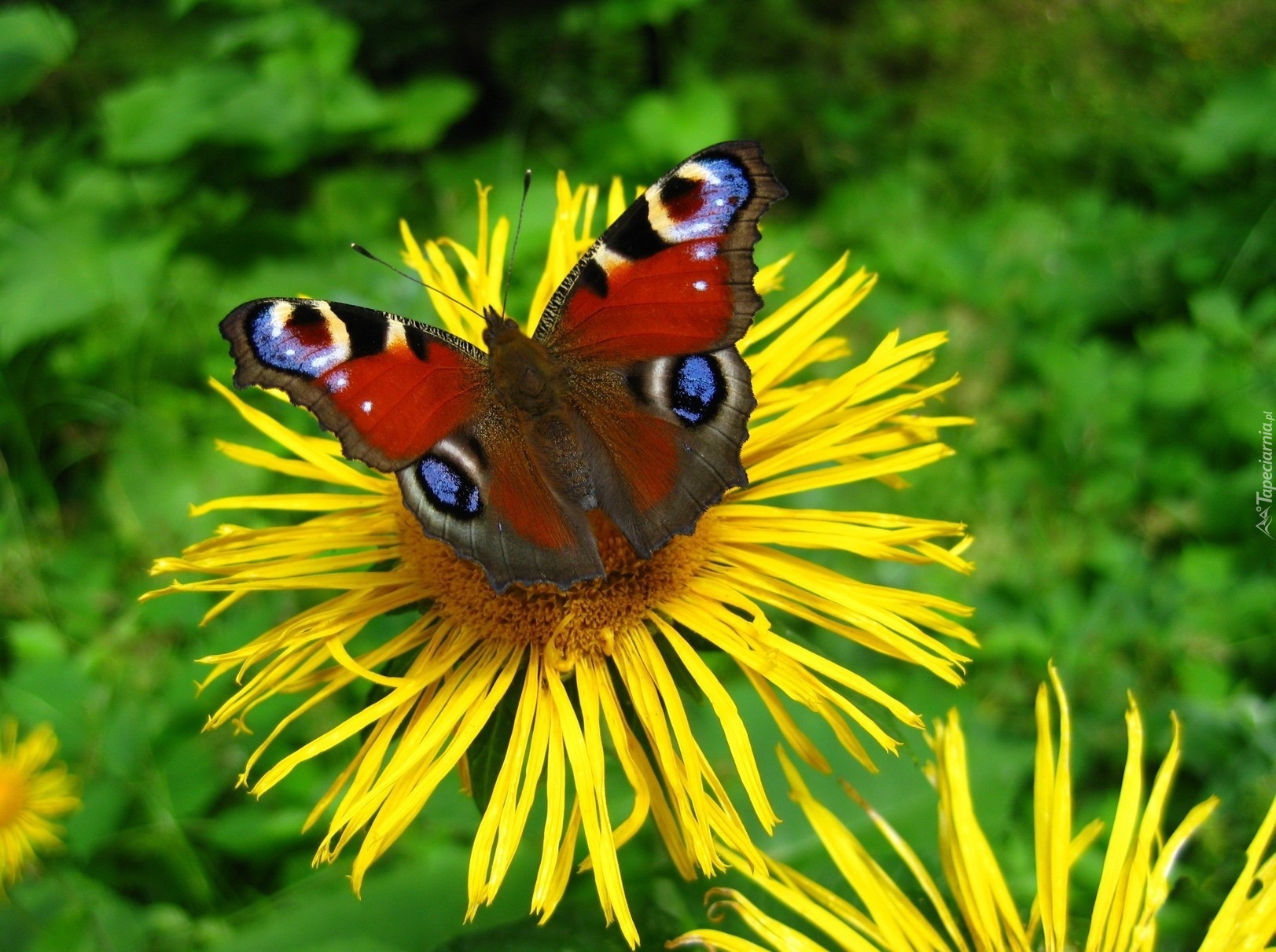 Edytor tapety: Żółte, Kwiaty, Kolorowy, Motyl, Rusałka, Pawik