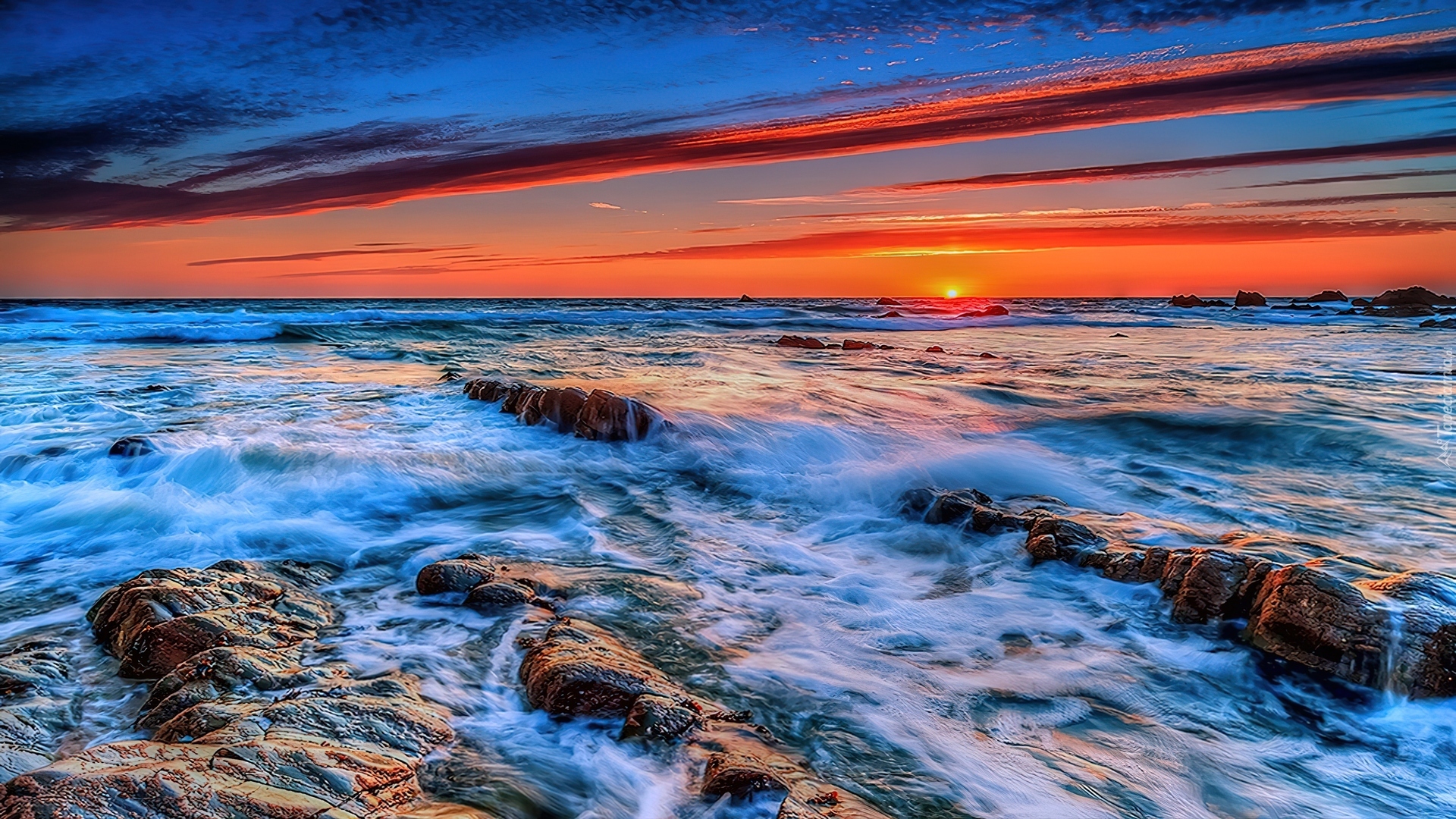 Edytor tapety: Morze, Fale, Skały, Zachód, Słońca